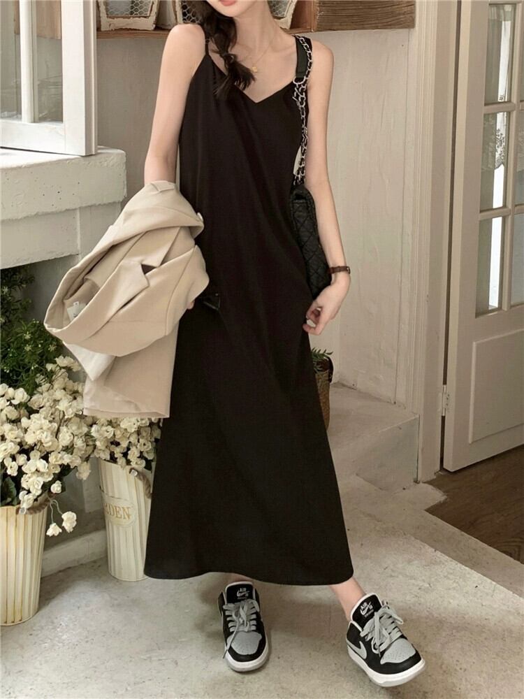 純粋な欲望の風サスペンダードレスの女性の夏の 2023 新しいシンプルでルーズな気質のドレープ感と薄いロングスカートのトレンディな内側 サマー 夏物 missk1821133692