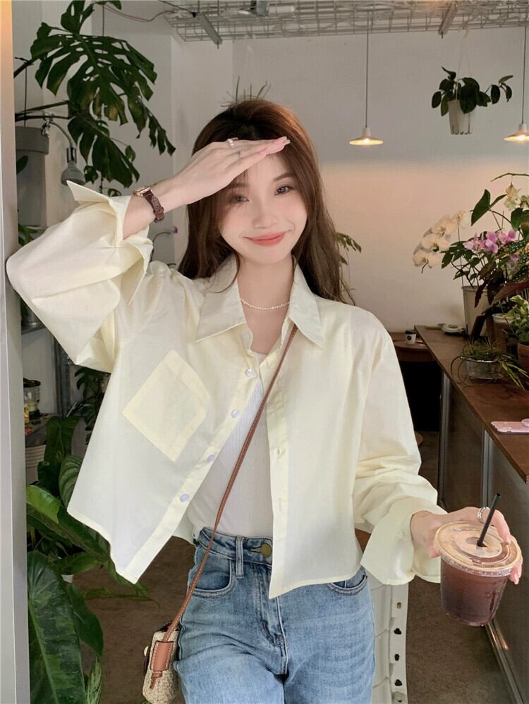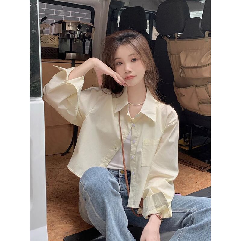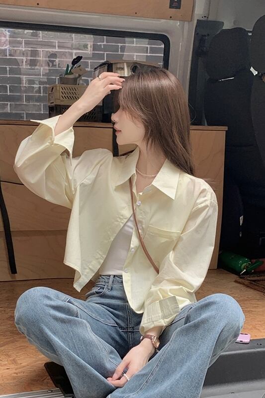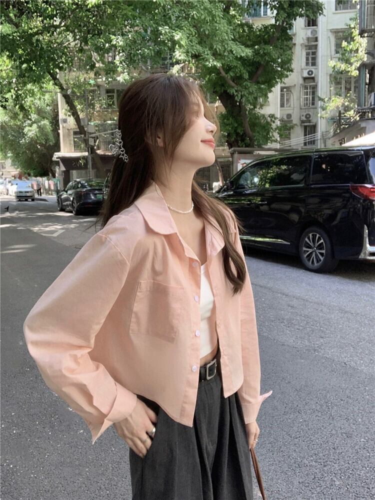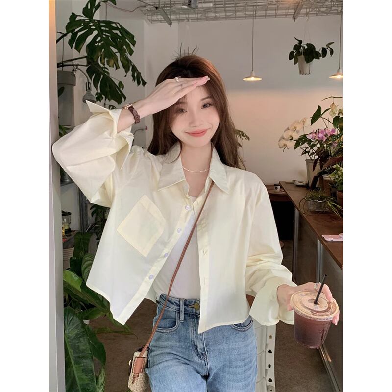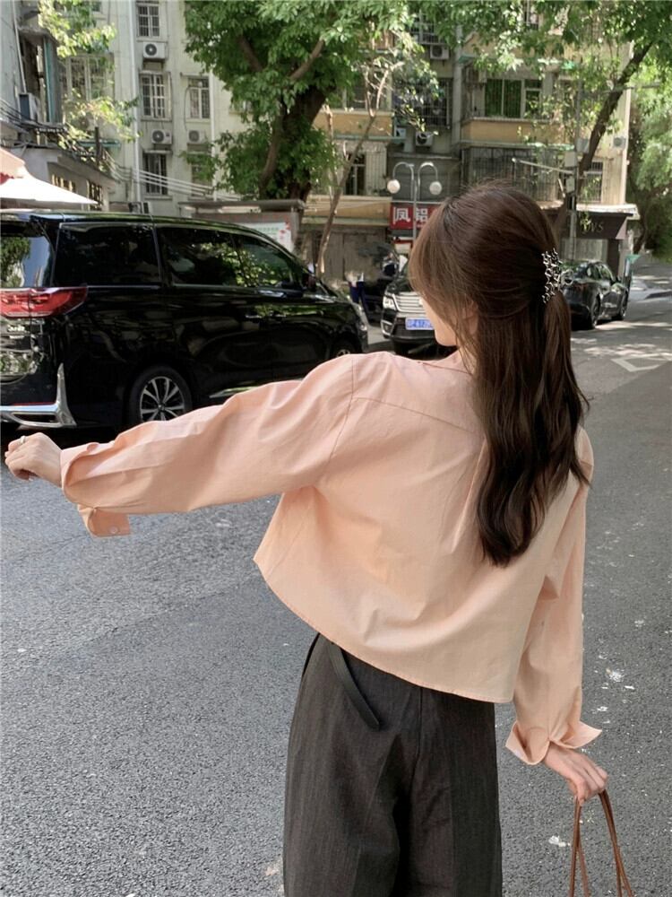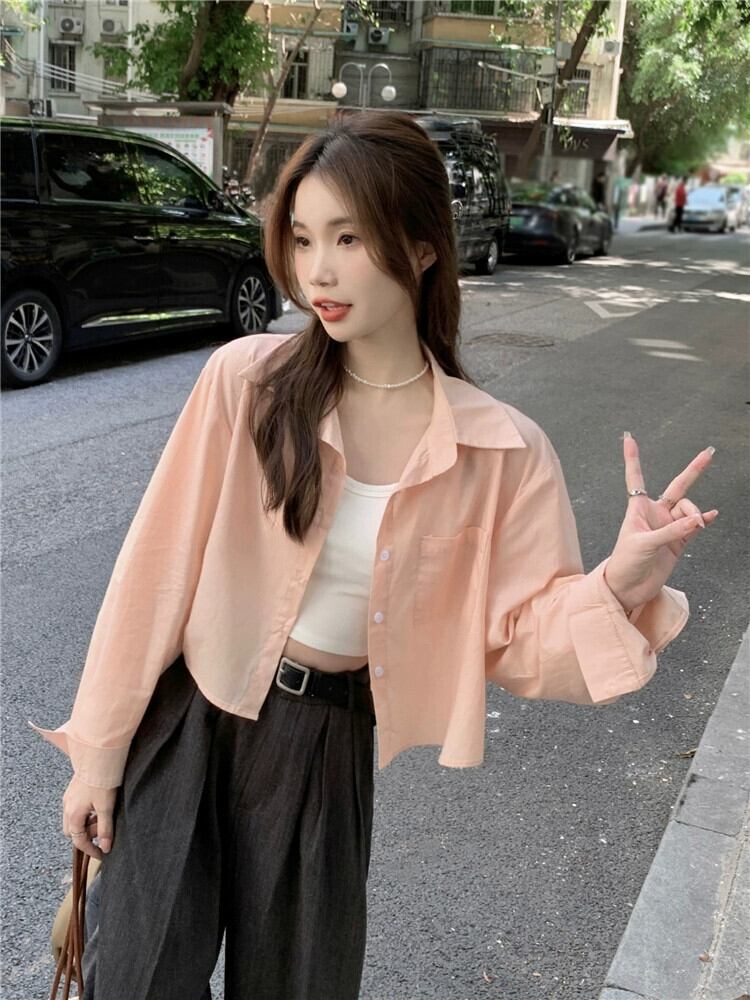 スタイルポロカラー長袖シャツ女性の夏の新しいカジュアルルーズオールマッチシングルブレストボタンショート日焼け止めトップ潮 ロング サマー 夏物 missk1375399229
