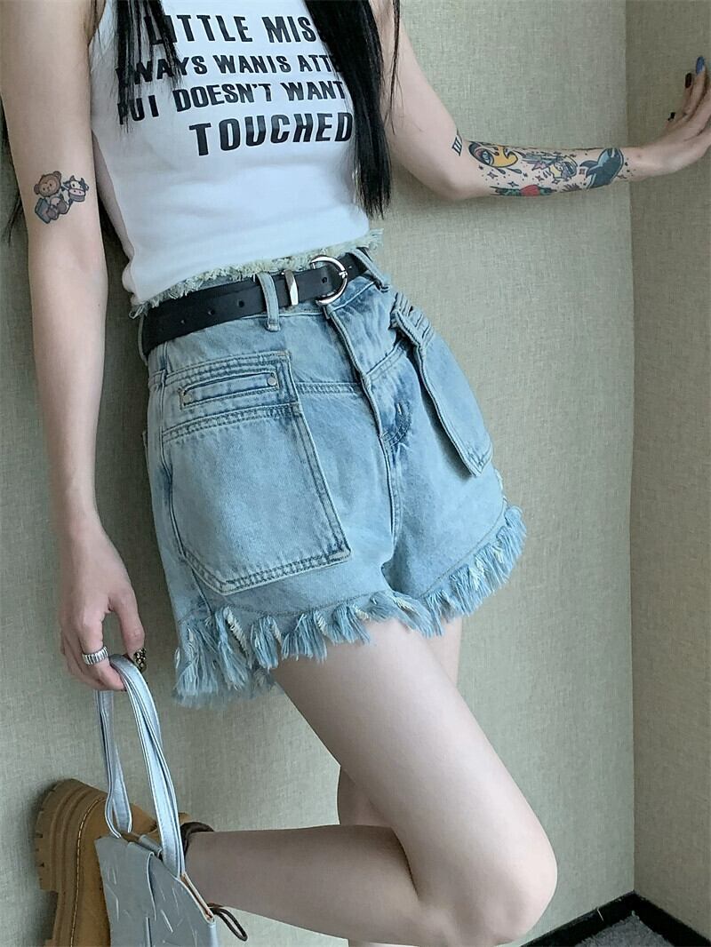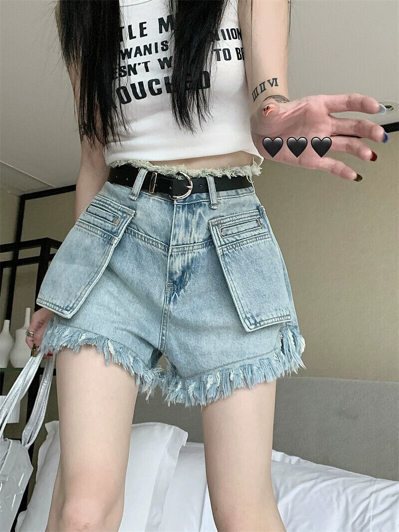 Tel ローエッジ デニム ショート パンツ レディース 夏バージョン 2023 新しいハイウエスト痩身デザイン オーバーオール ショーツ ハイウェスト サマー 夏物 ブルマー missk24437091529