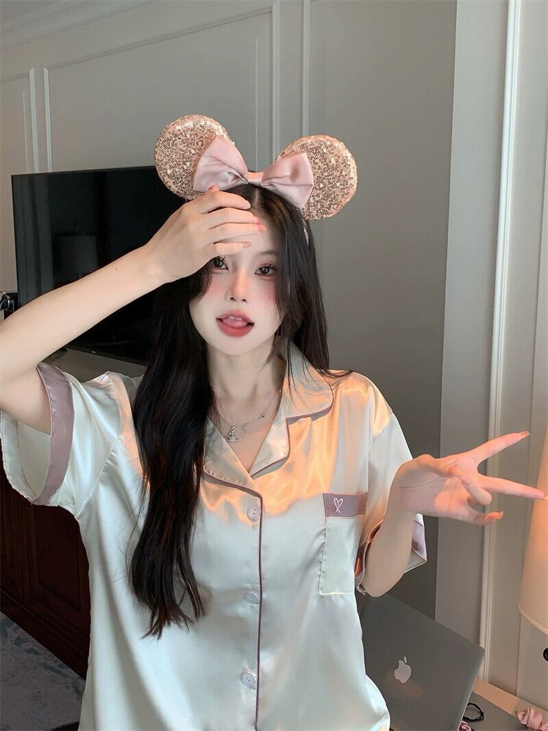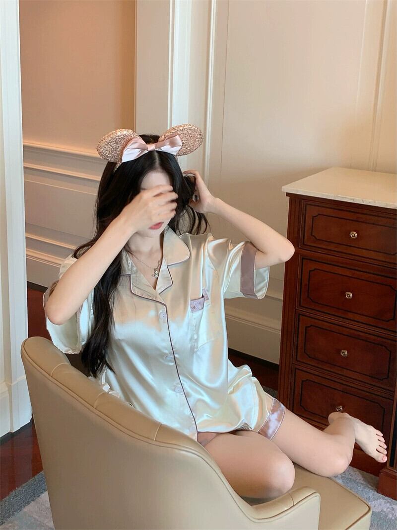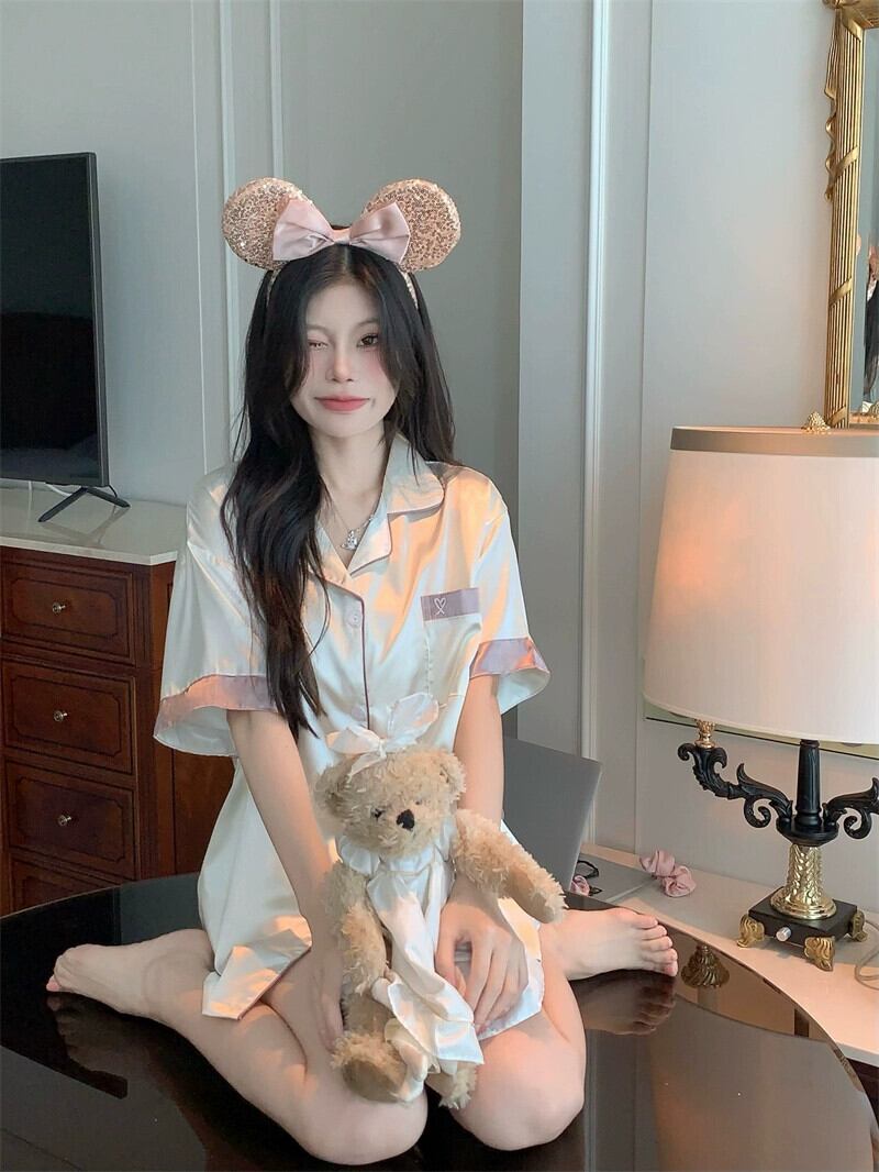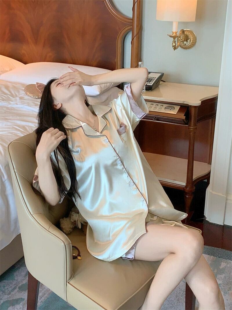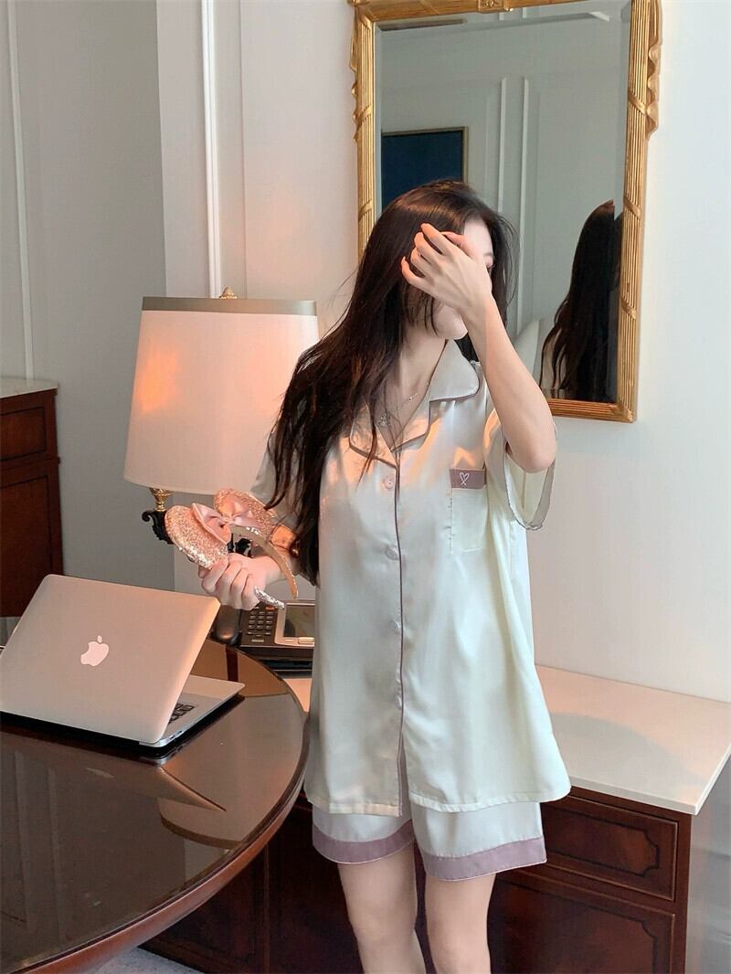 アイスシルク冷感ハイエンドルーズラペル半袖パジャマパジャマ 2 点セット女性の夏の 2023 新しいホーム服 サマー 夏物 missk87413292034