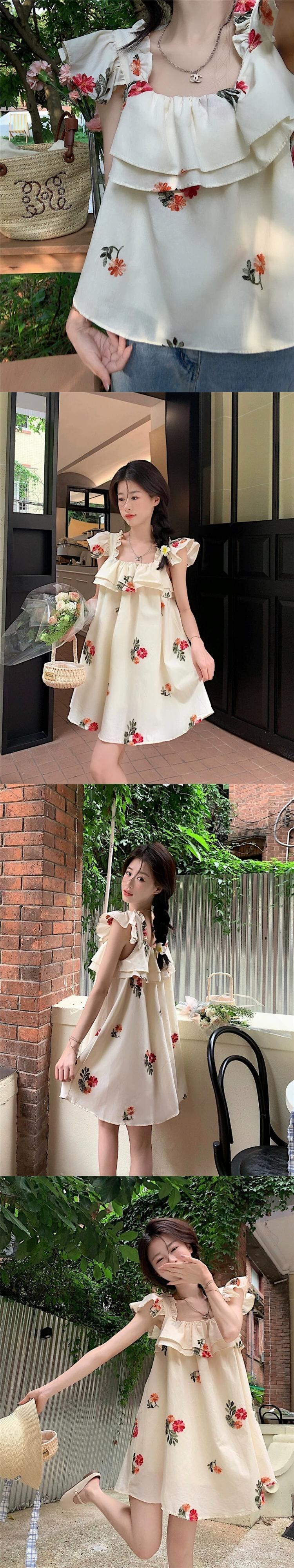 甘い刺繍サスペンダーシャツレディース2023年夏新作フリル付きデザイン薄くて年齢を軽減するアウタートップ レッド ラッフル 大人ガーリー スウィート キュート カジュアル サマー 夏物 missk81754354499