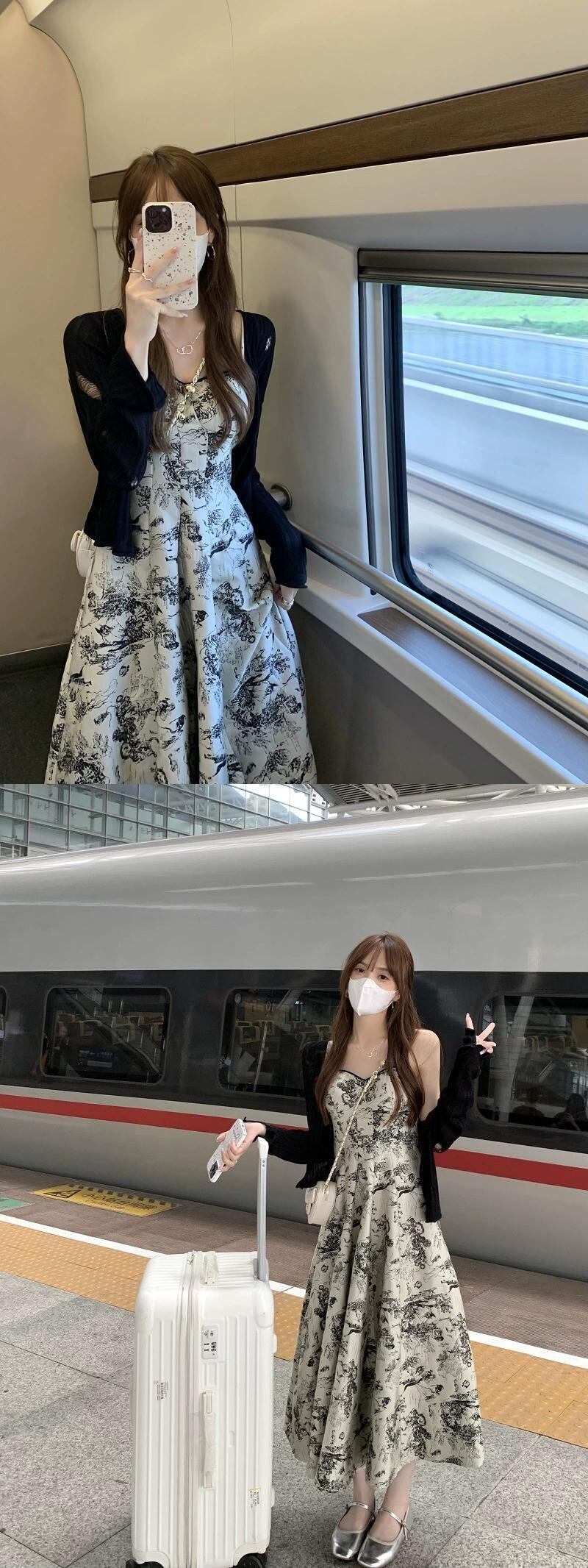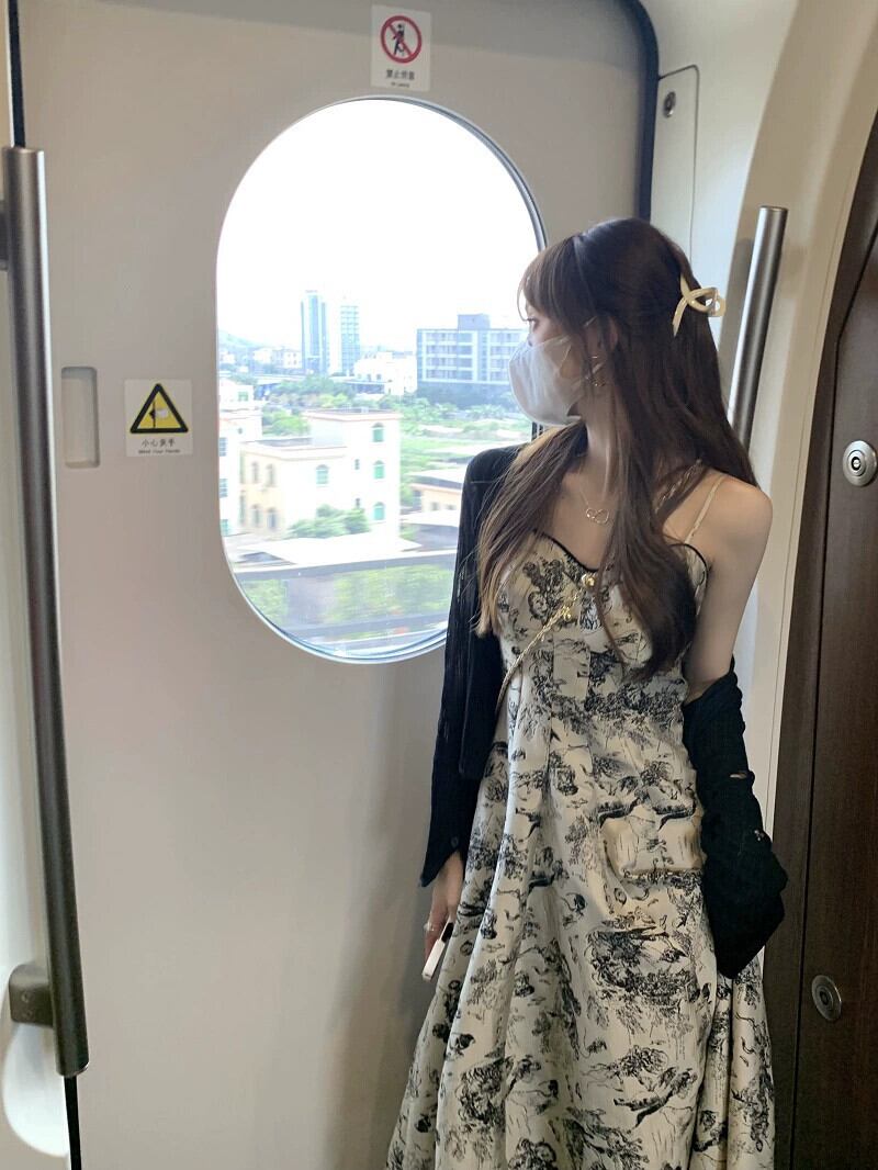 水墨画印刷高品質サスペンダードレス夏の新しいスタイルの穴長袖日焼け止めカーディガンファッションスーツ女性 ロング サマー 夏物 missk61029619667
