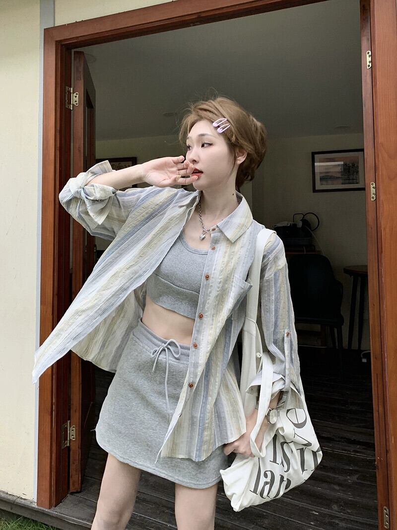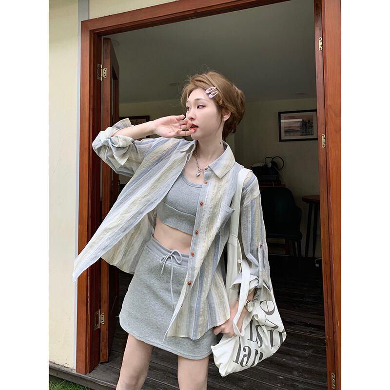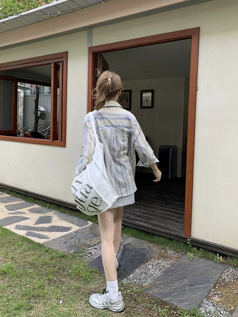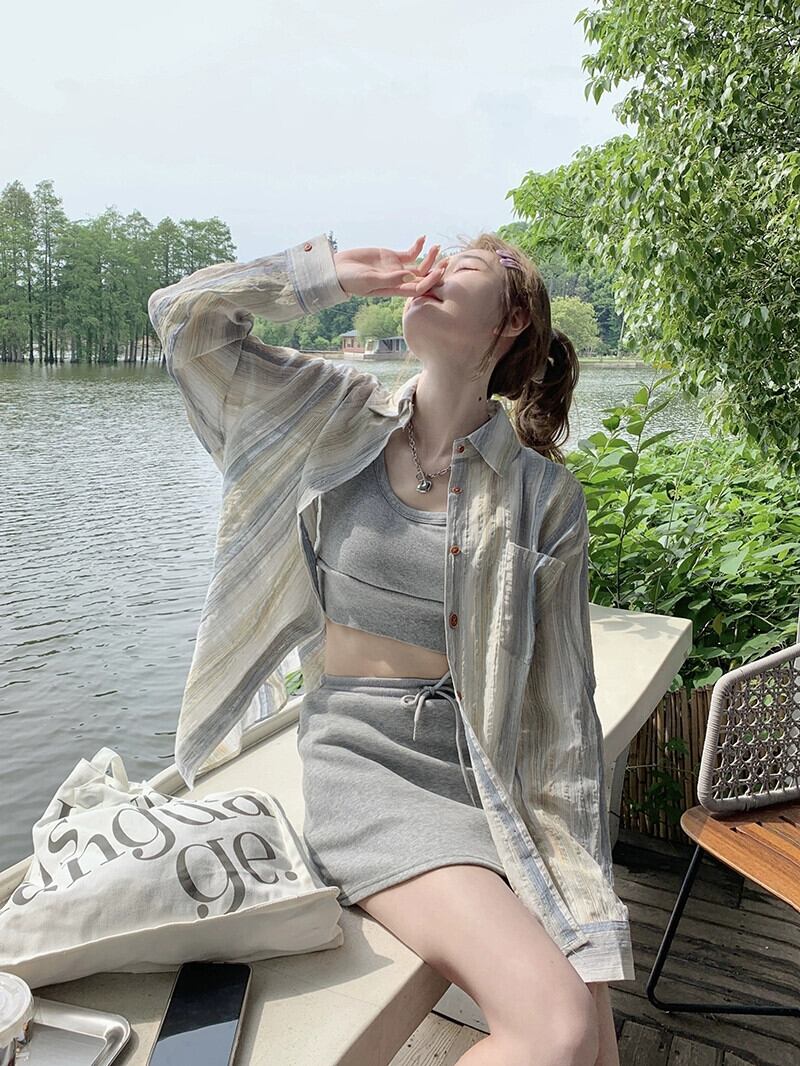 レトロなストライプの軽くて薄い長袖日焼け止めシャツ女性の夏の新しいデザインセンス、ゆったりと多用途のカジュアルカーディガントップ ロング サマー 夏物 missk13059552232
