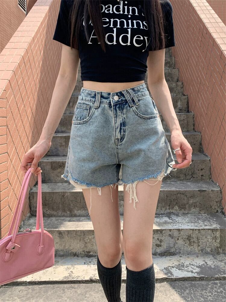 ウエストジーンズレディース夏バージョン2023新しいスリムAラインショーツデザインセンスローエッジワイドレッグパンツパンツ サマー 夏物 ブルマー missk81635909177
