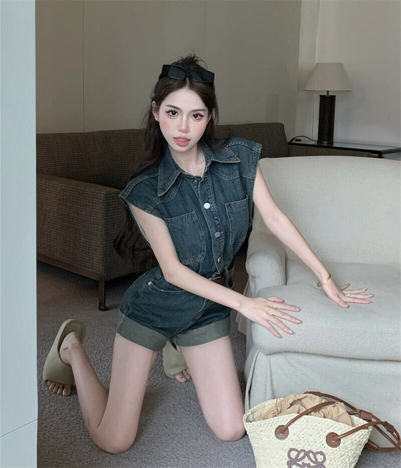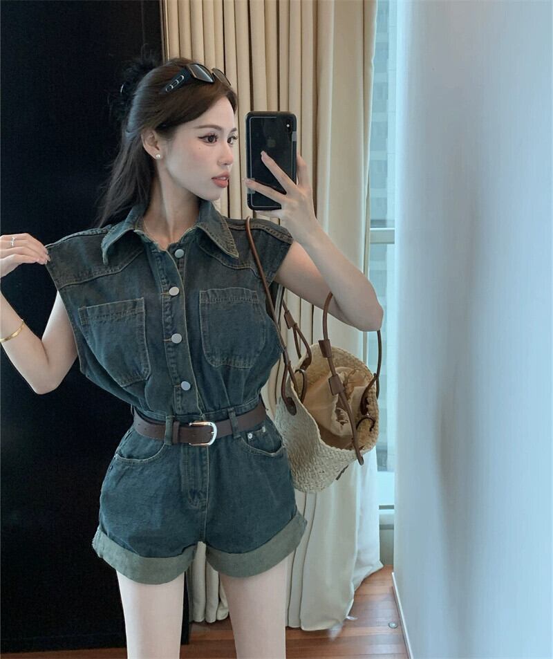 バージョン 2023 新しいノースリーブファッションポロカラーショーツ学生夏潮ジャンプスーツジーンズ女性のパンツ サマー 夏物 ブルマー missk60399884143