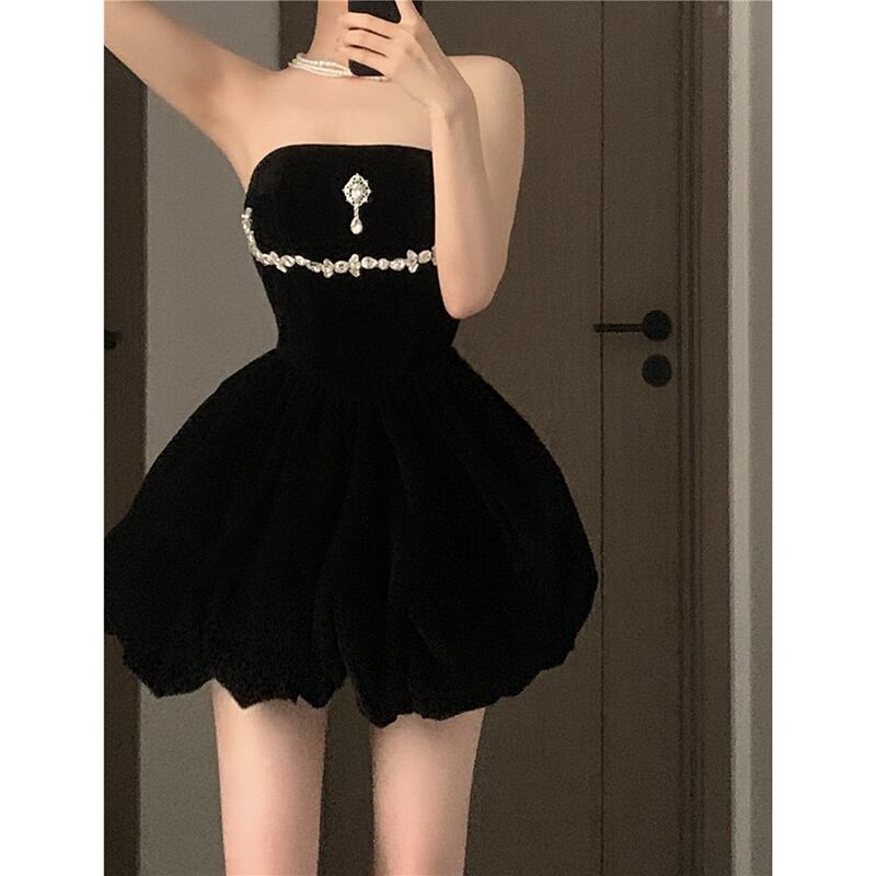 -エンドチューブトップドレスレディース2023年夏新作ウエスト痩身デザインダイヤモンドチェーンフラワーバッドスカートイン サマー 夏物 フラワーデザイン missk82782379176