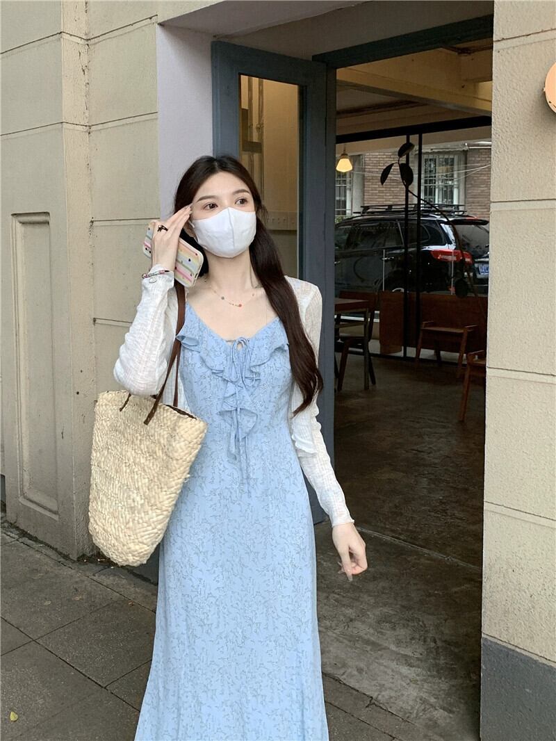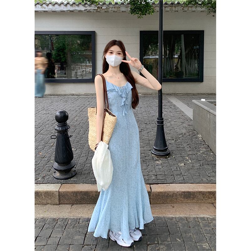 優しい風花フィッシュテールサスペンダードレス女性の夏 2023 スリムスリムとスレンダーフリル気質ロングドレス サマー 夏物 花柄 missk92751292635