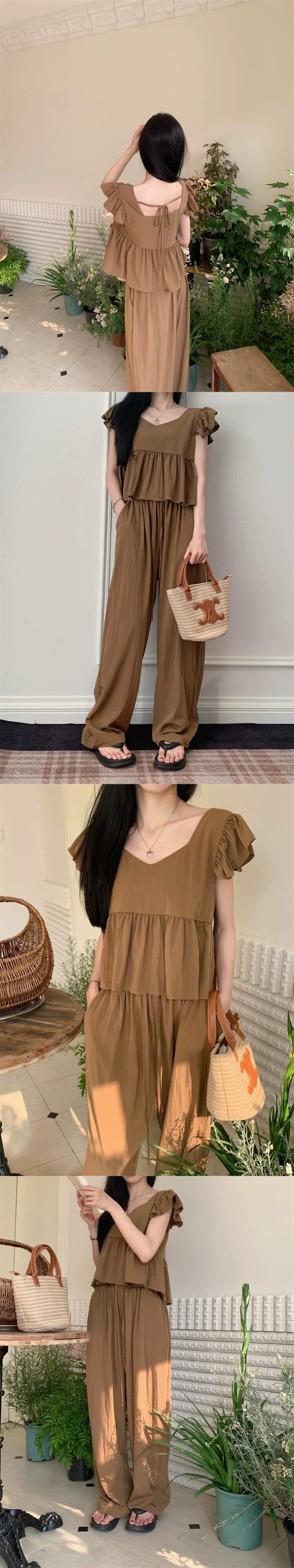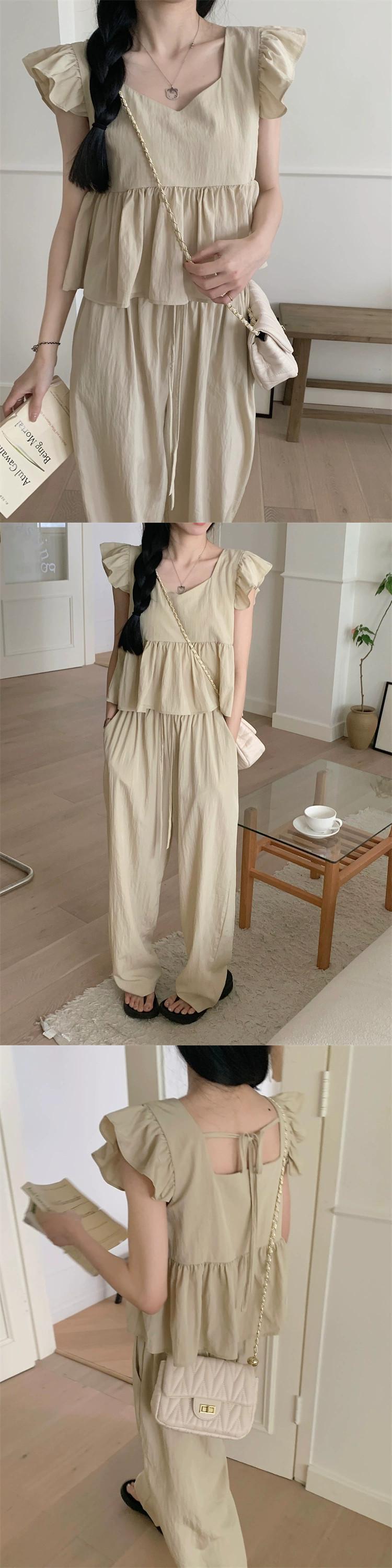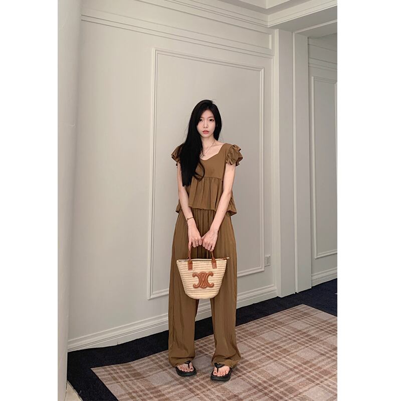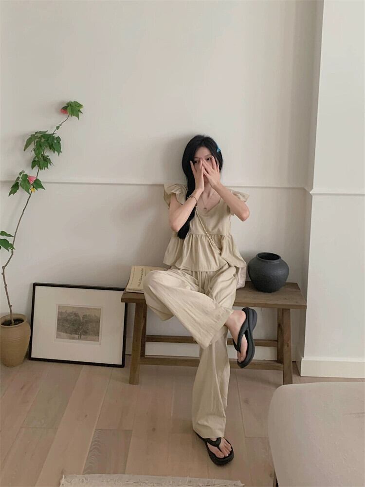 センス年齢軽減 V ネックフライスリーブシャツトップハイウエストワイドレッグカジュアルパンツ女性の夏の新しいファッションスーツ ハイウェスト サマー 夏物 Vネック missk90667607890