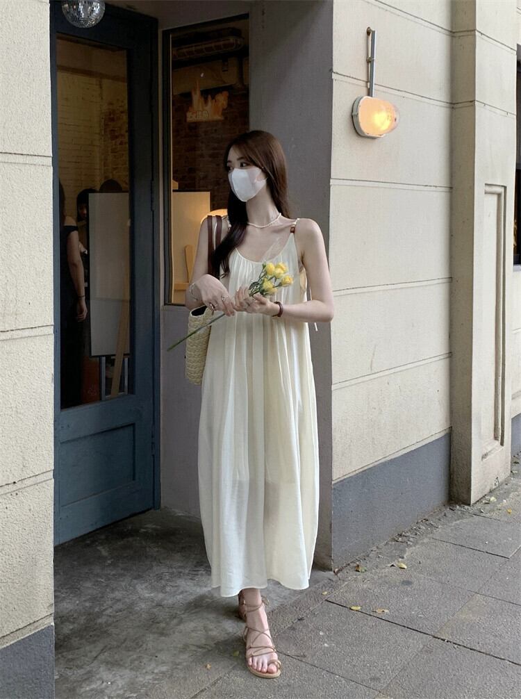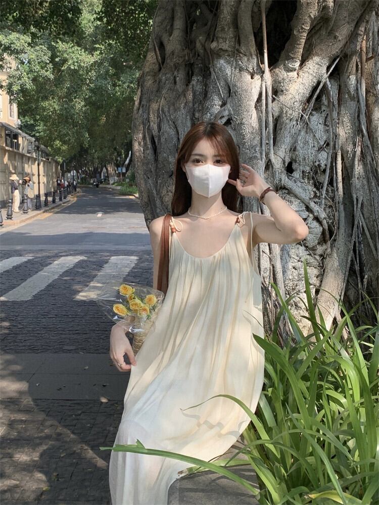 夏スタイル 2023 新しい優しい風緩い痩身シンプルシックなバックレス慎重マシンサスペンダードレス女性 サマー 夏物 missk17668388268