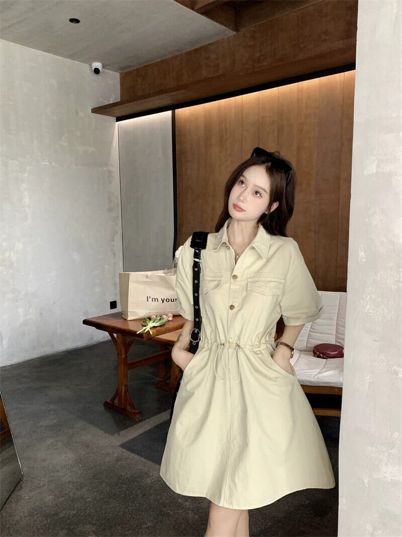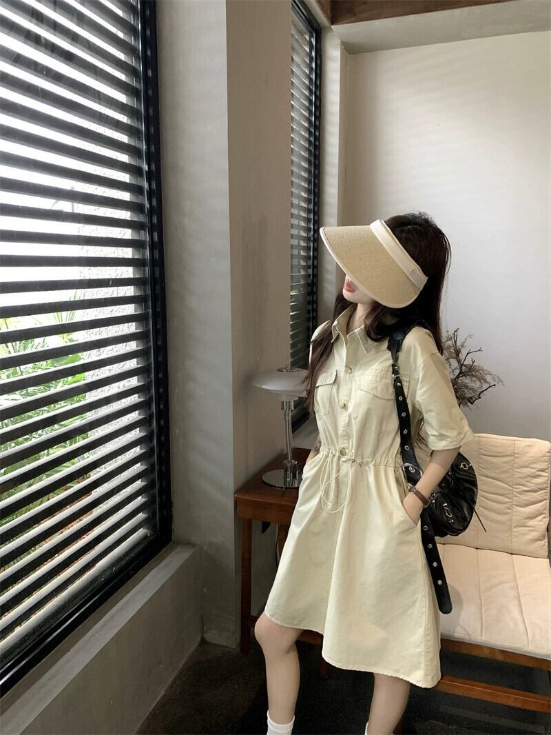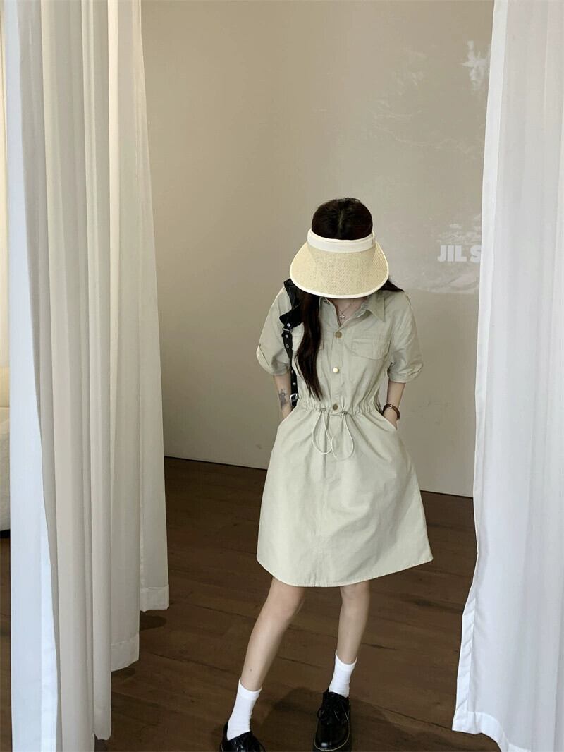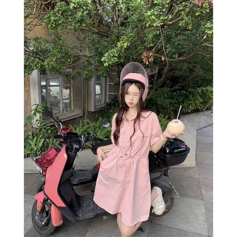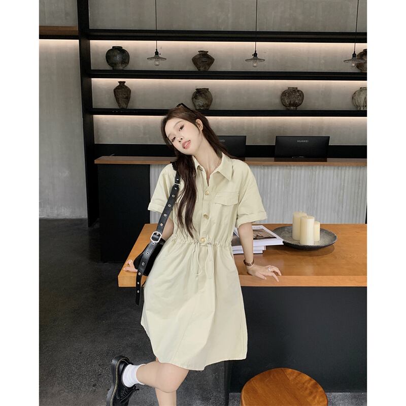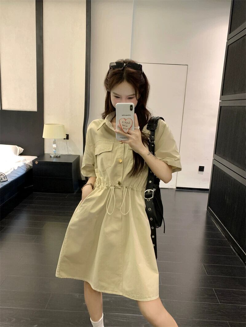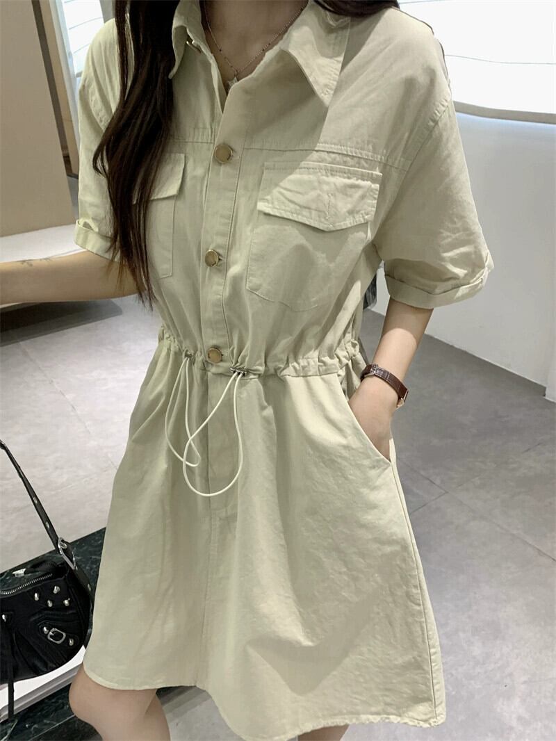 POLO 襟巾着ツーリングドレス女性の夏の新しいスタイルハイウエストスリムデザイン A ラインスカートシック ハイウェスト サマー 夏物 Aライン missk75029887945