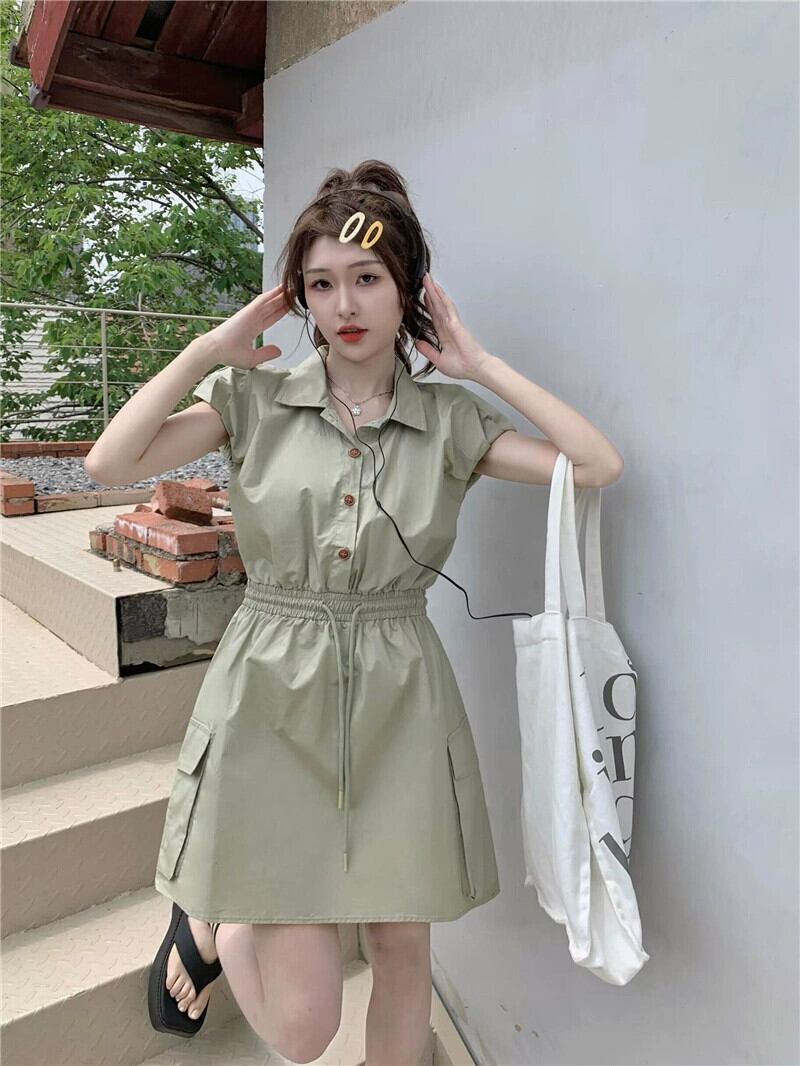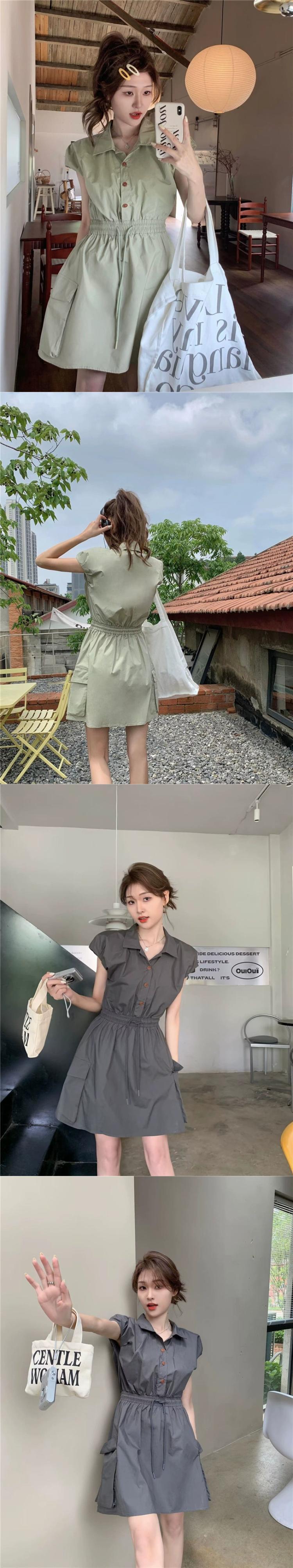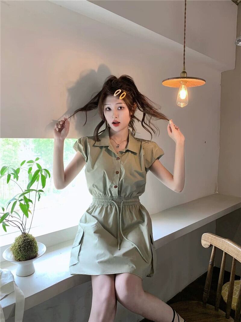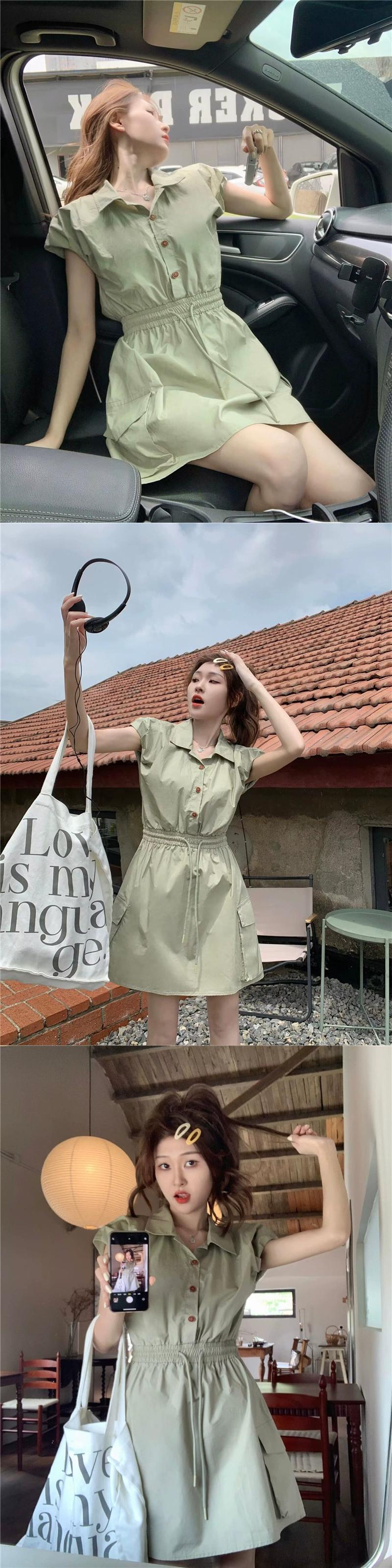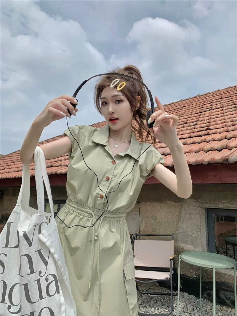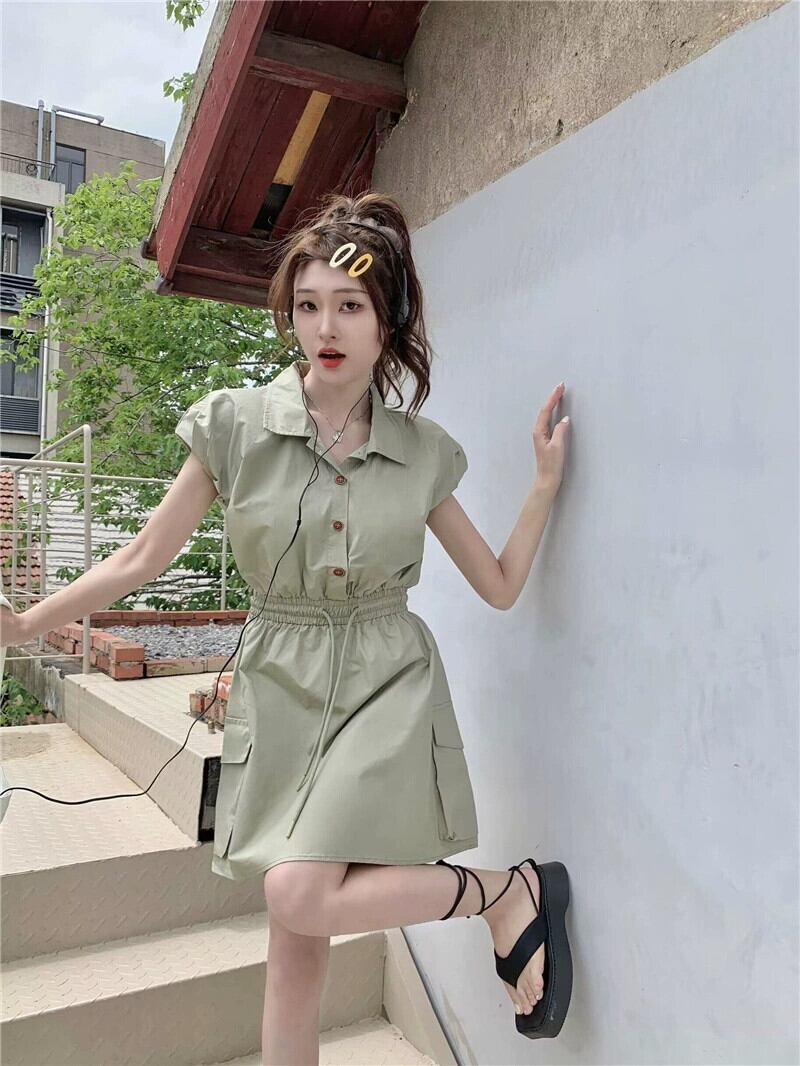 ポロカラーツーリングドレスの女性の 2023 夏の新しいスタイルは、しょっぱくて甘い巾着ウエスト痩身ノースリーブ A ラインスカート 大人ガーリー スウィート キュート カジュアル サマー 夏物 Aライン missk63241855754