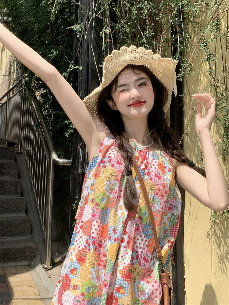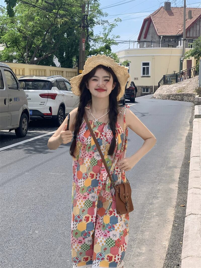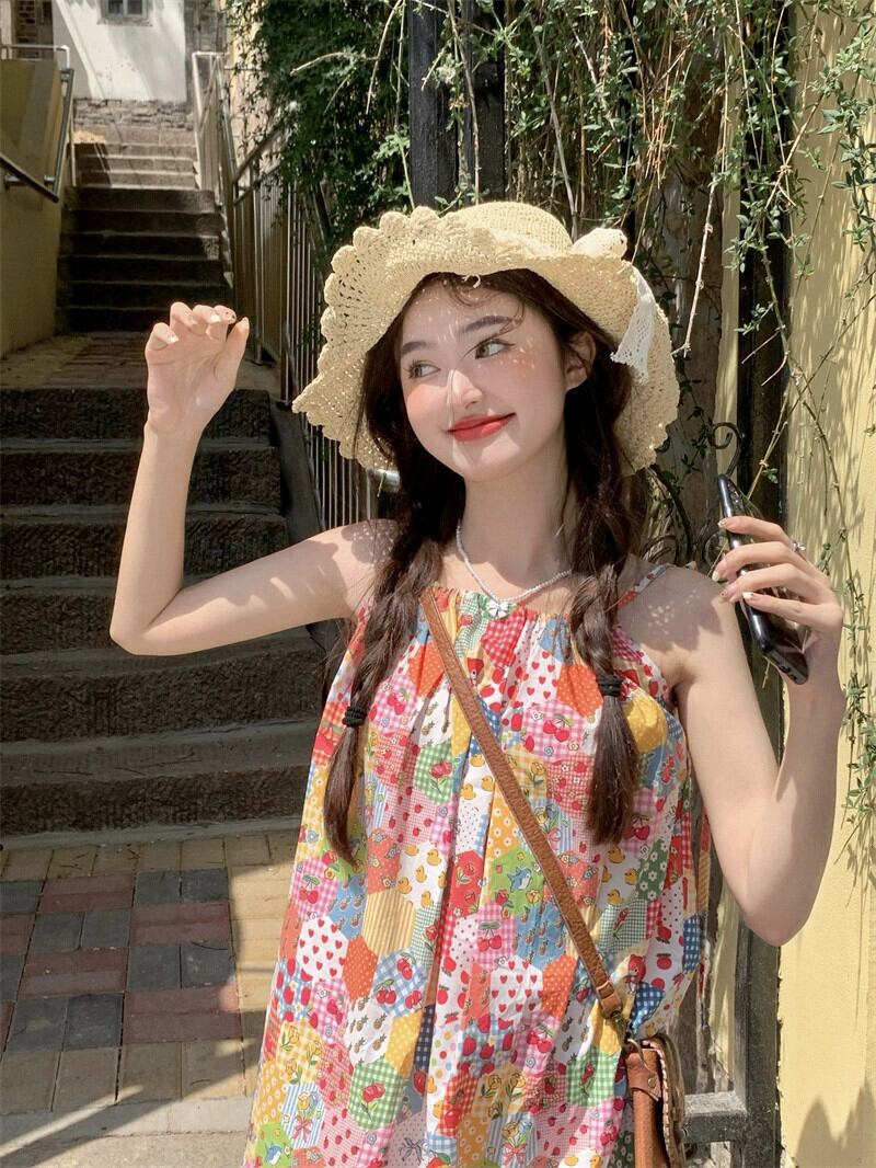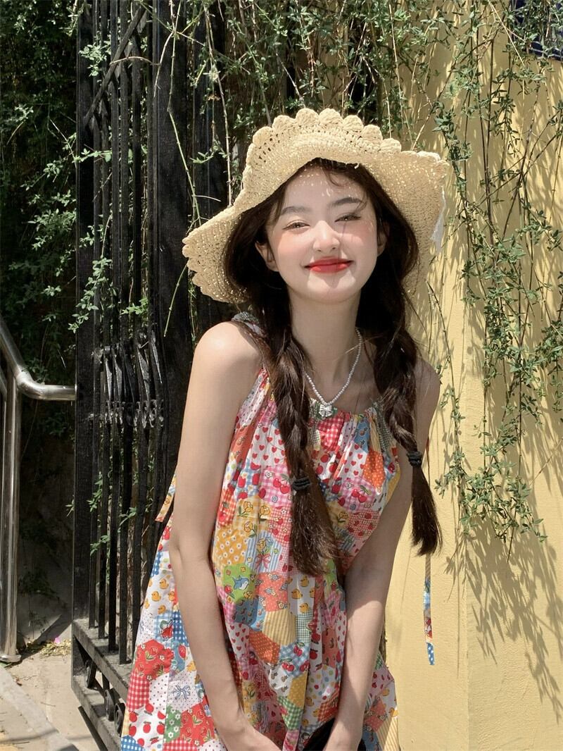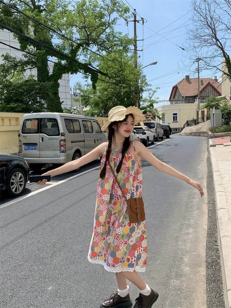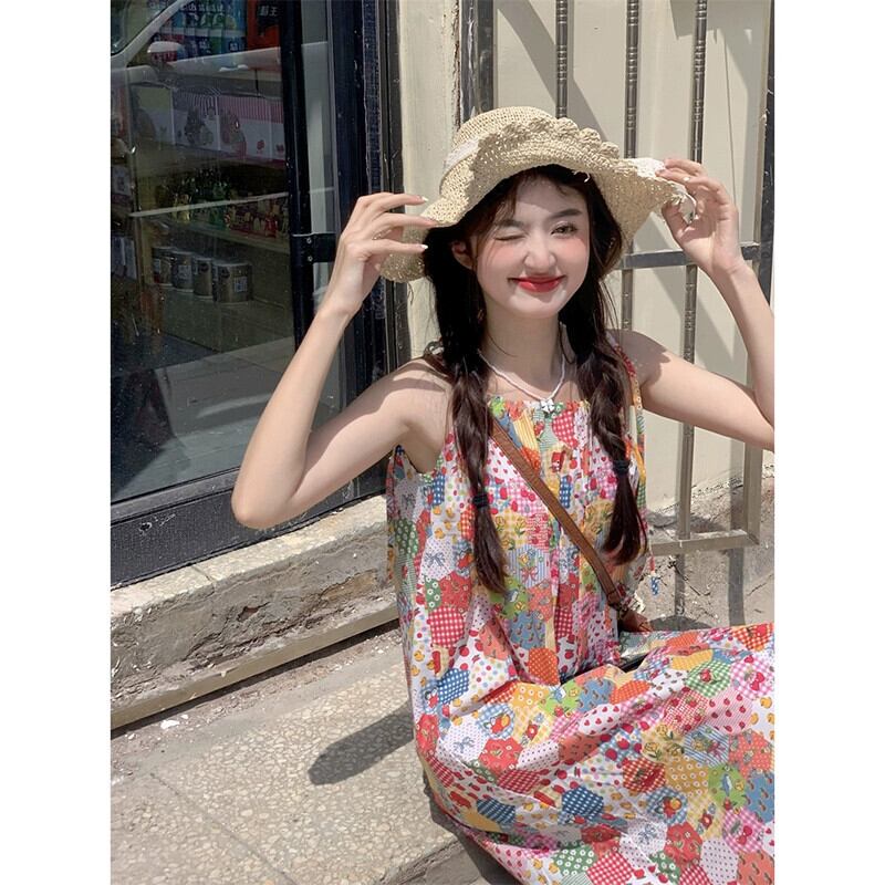 ドーパミン花柄スリングドレス女性の夏の 2023 新しいレースステッチ痩身と年齢を減らすスカート サマー 夏物 missk76755454482