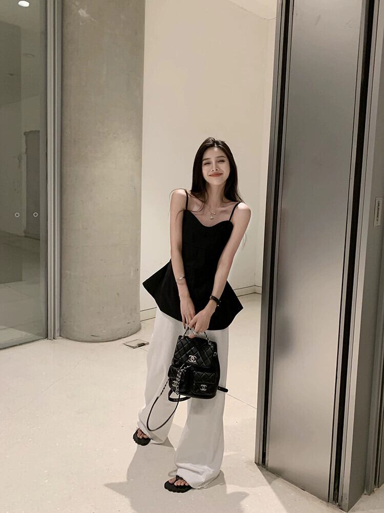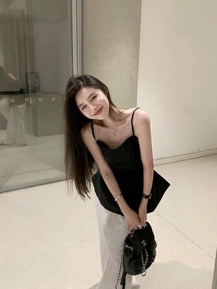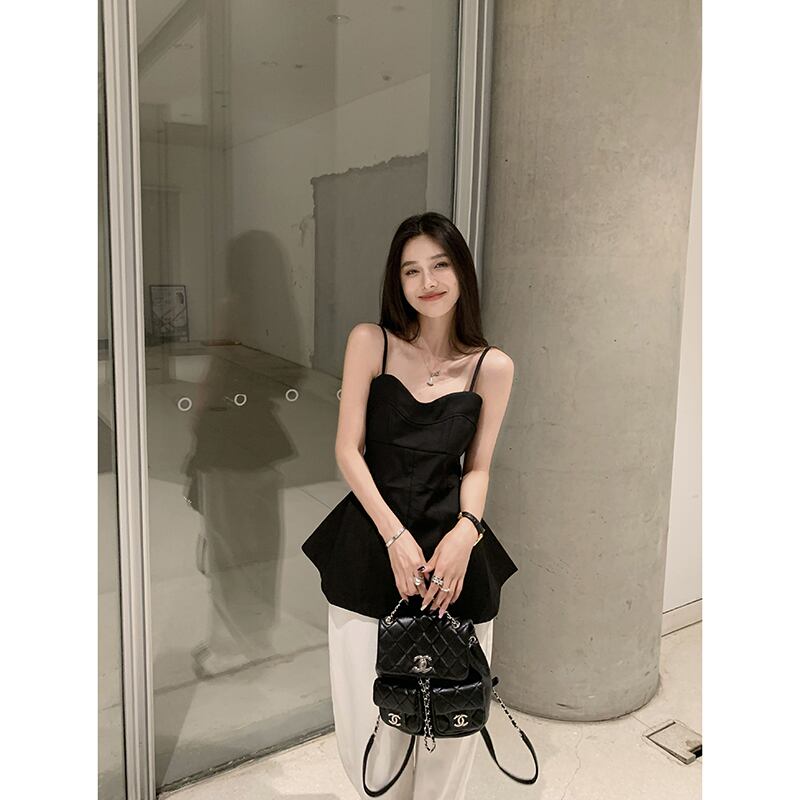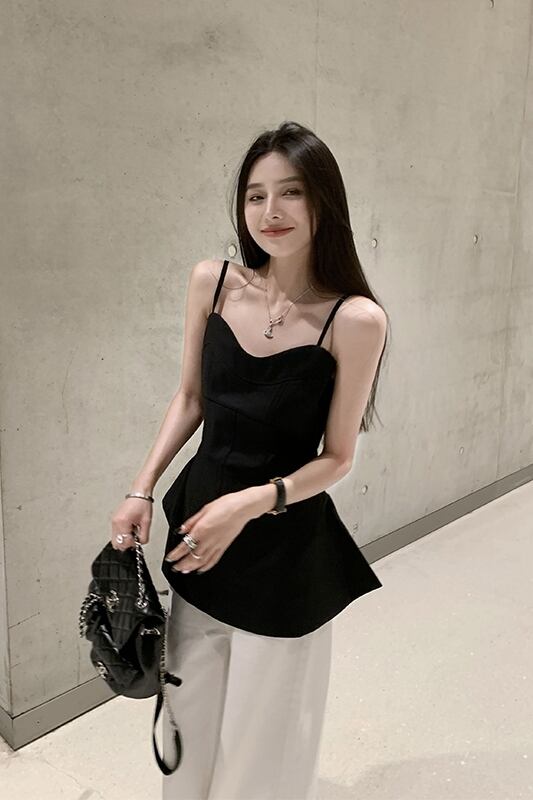 黒のサスペンダーを着ている女性の夏の新しいフレンチスタイル自己修養オールマッチ気質デザインセンスニッチインナーベストトップ ブラック サマー 夏物 missk46834124010