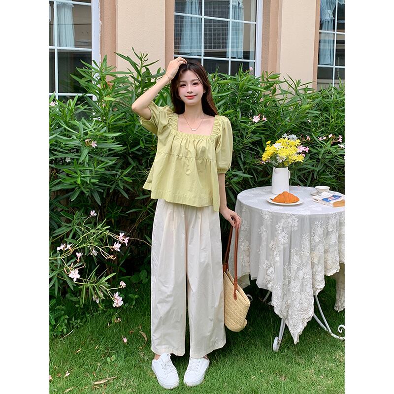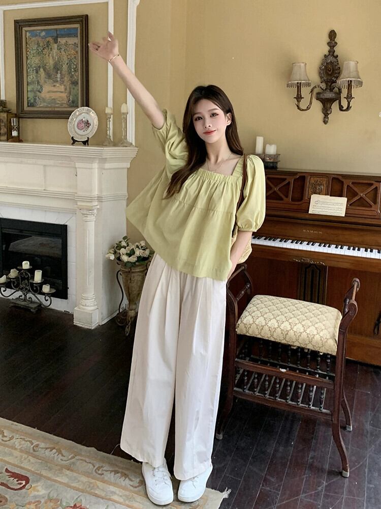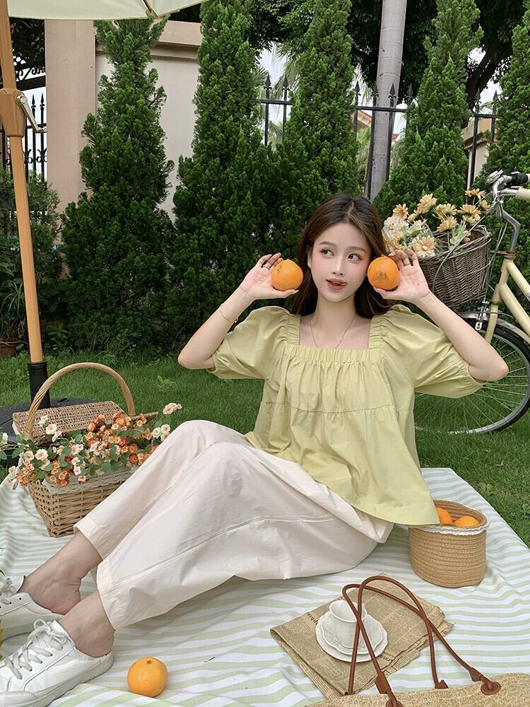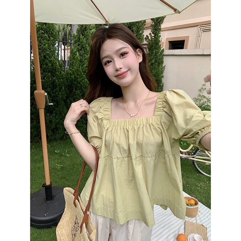 スクエアカラーパフスリーブシャツ女性の夏の 2023 新しい甘くてルーズなアウターウェア年齢を軽減するファッション小さなシャツ人形シャツ 大人ガーリー スウィート キュート カジュアル サマー 夏物 スクウェア missk16749778216