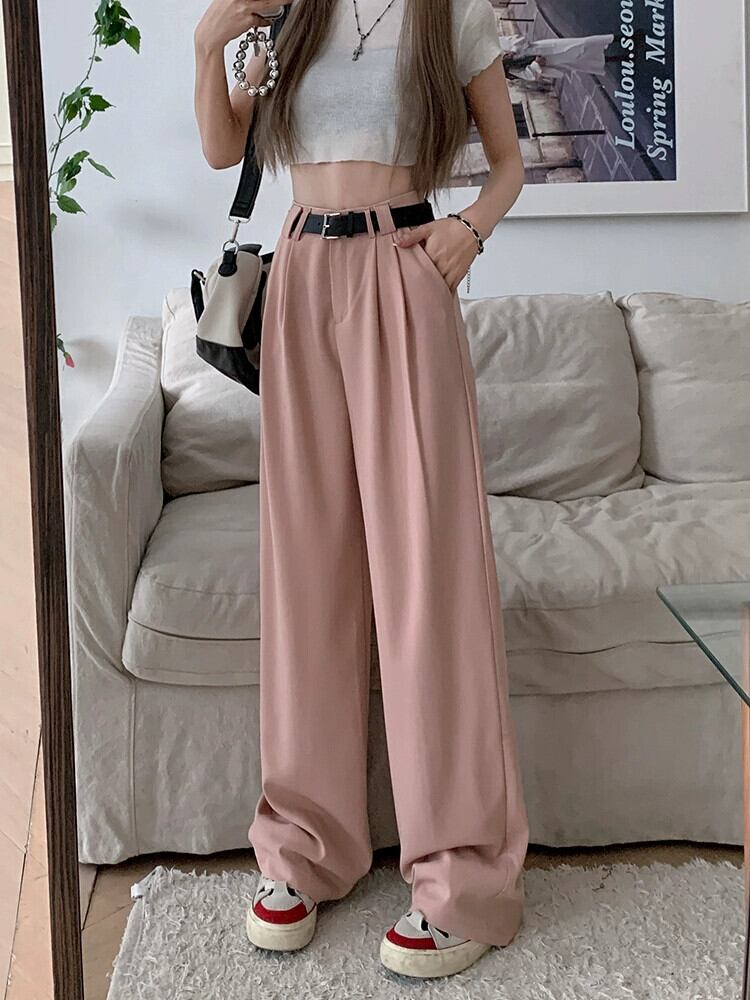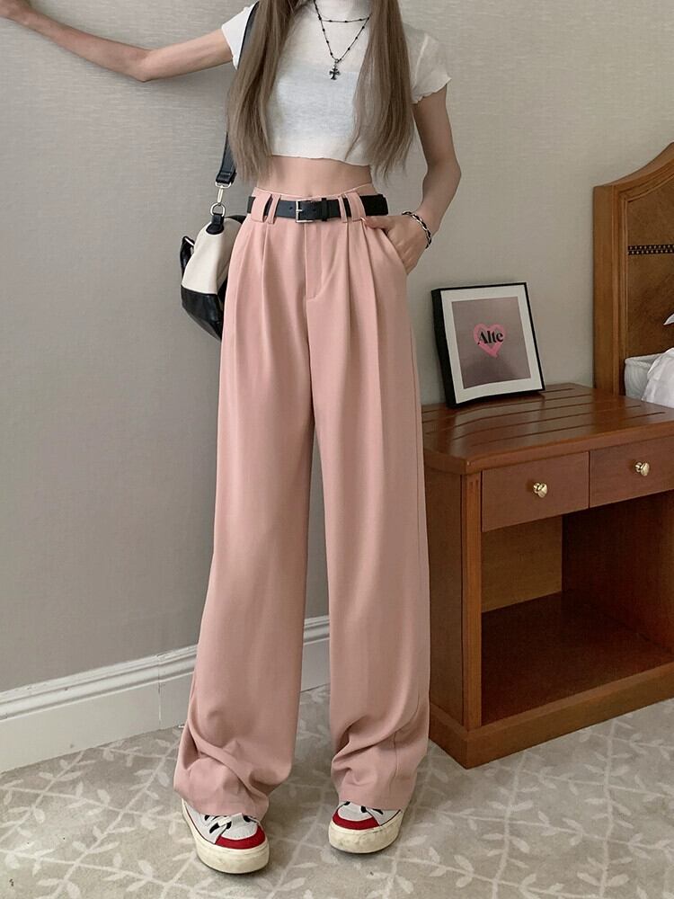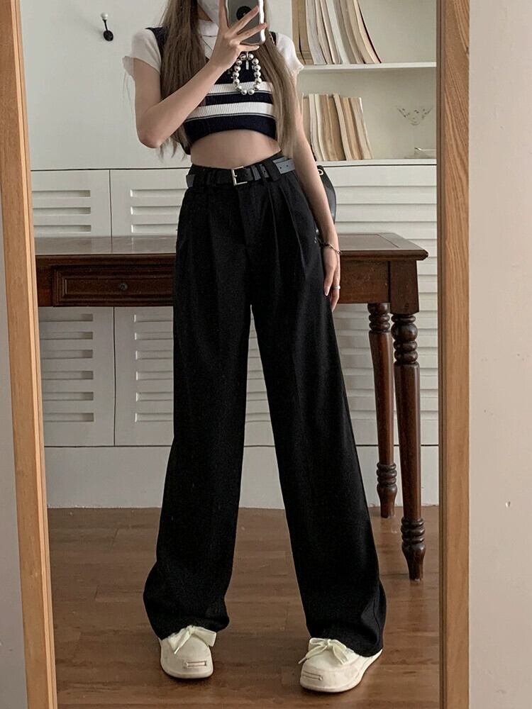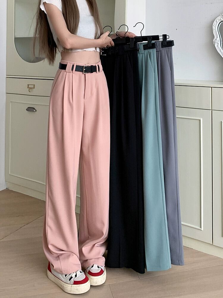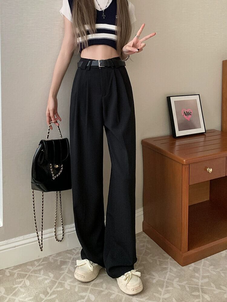 ベルトドレープスーツモップパンツ女性の夏バージョン 2023 新しいハイウエストスリムワイドレッグカジュアルパンツズボン ハイウェスト サマー 夏物 ハーネス ワイドパンツ missk41724185989