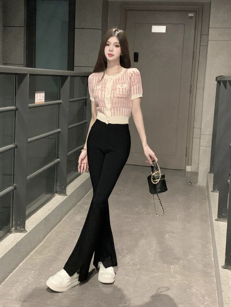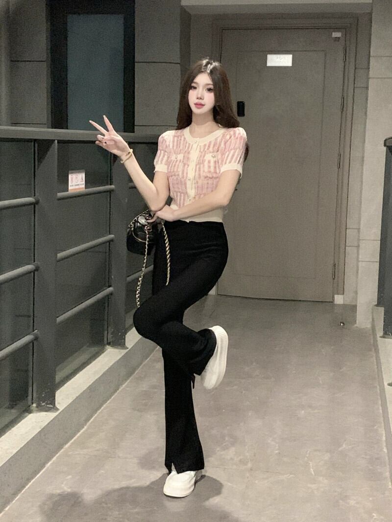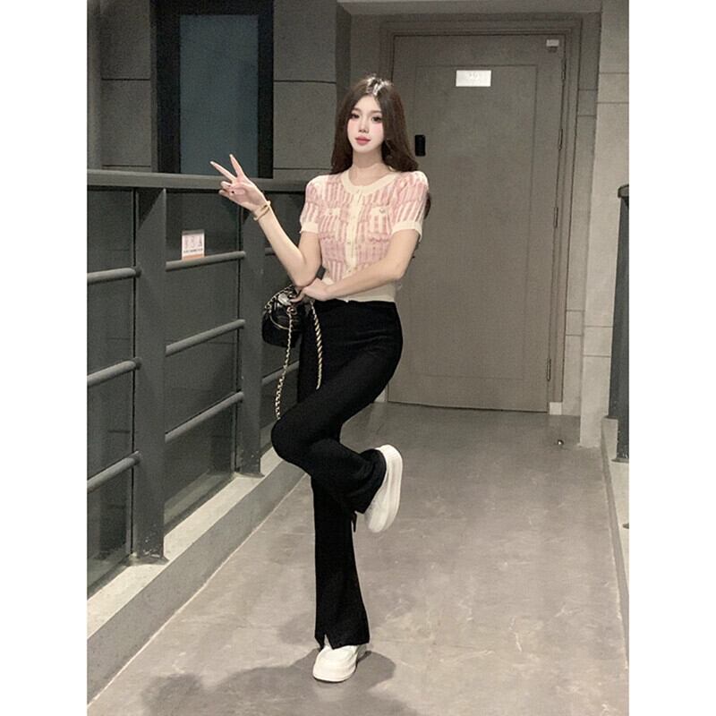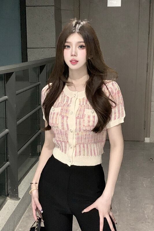 Xiaoxiangfeng 薄いセクション半袖ニットセーター婦人服夏 2023 新しいスタイルスリムで薄い短い気質アウターウェアトップ ショート サマー 夏物 missk45225625836