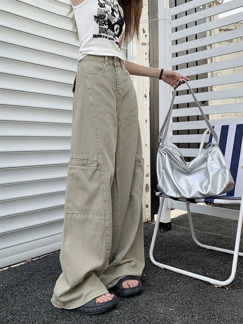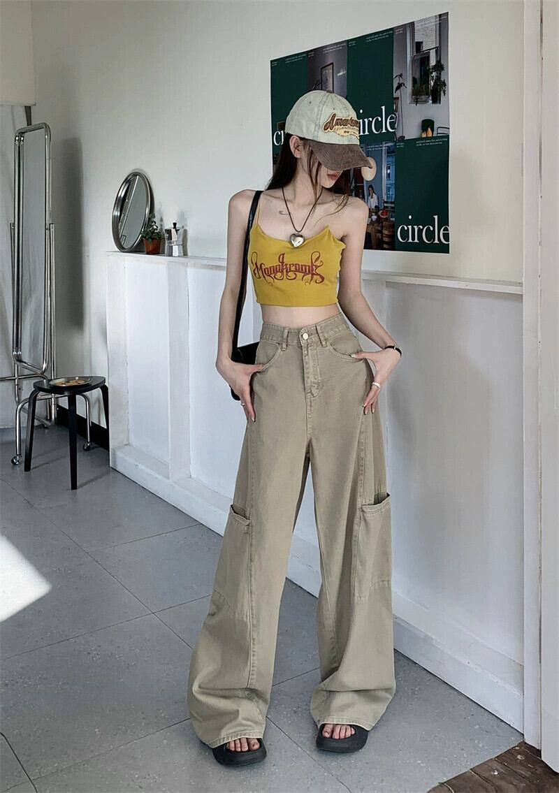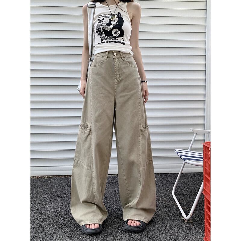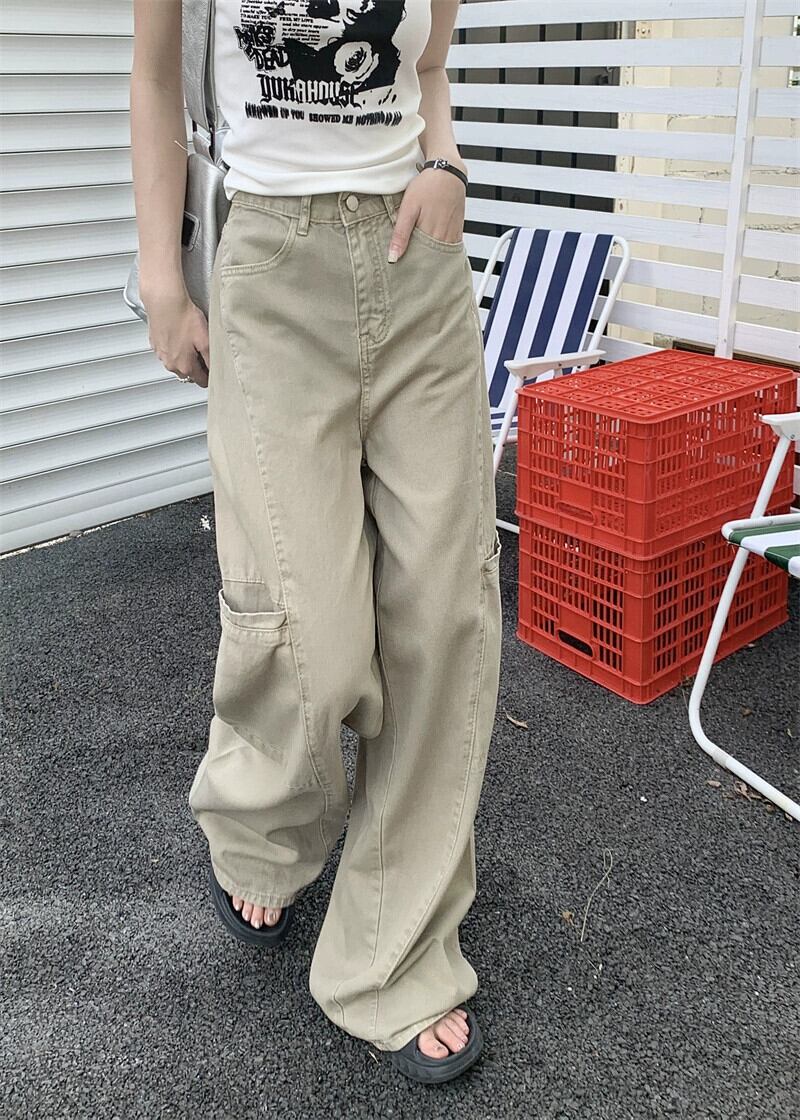 ウエストビッグポケットジーンズ夏新しいレトロスタイルルーズオーバーオールインワイドレッグパンツ婦人服 サマー 夏物 ワイドパンツ missk4662528738