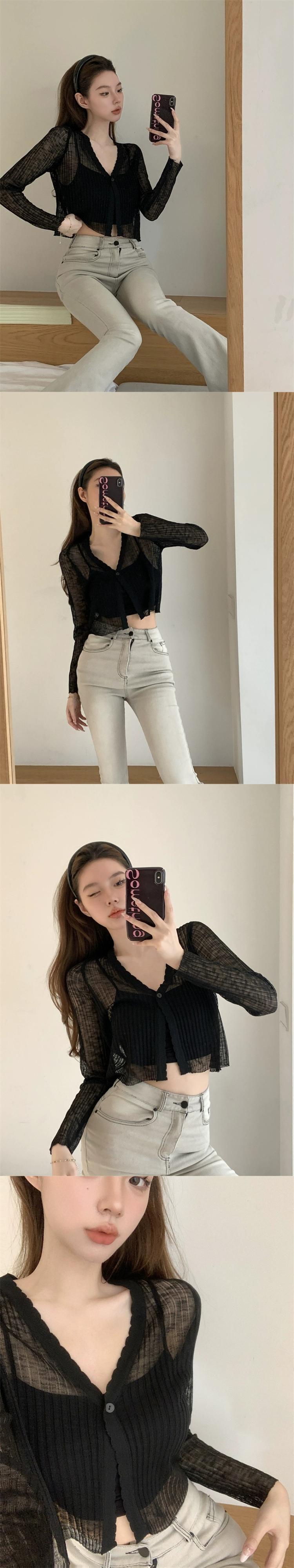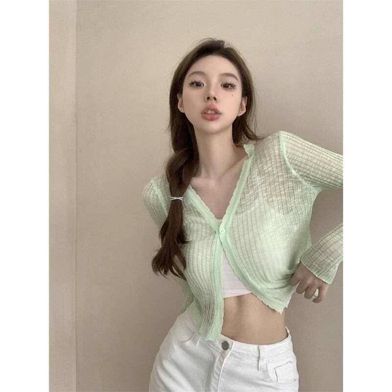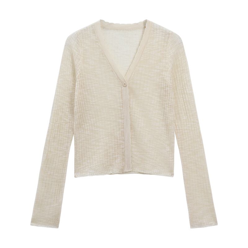 薄手の日焼け止めニットカーディガンレディース 2023 夏の新作フレンチ V ネックショートセクションスリムスリム長袖カーディガン ロング サマー 夏物 Vネック missk56819471171