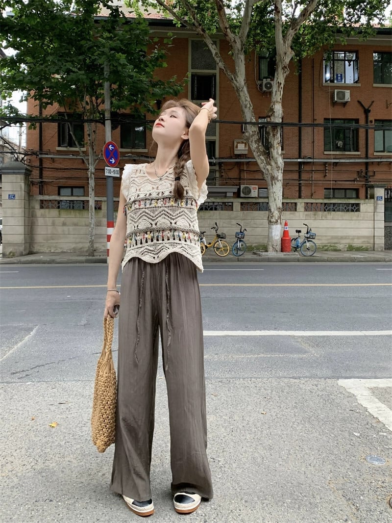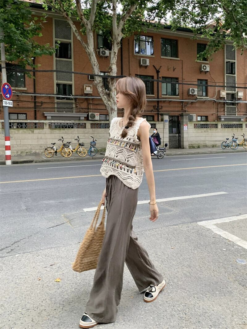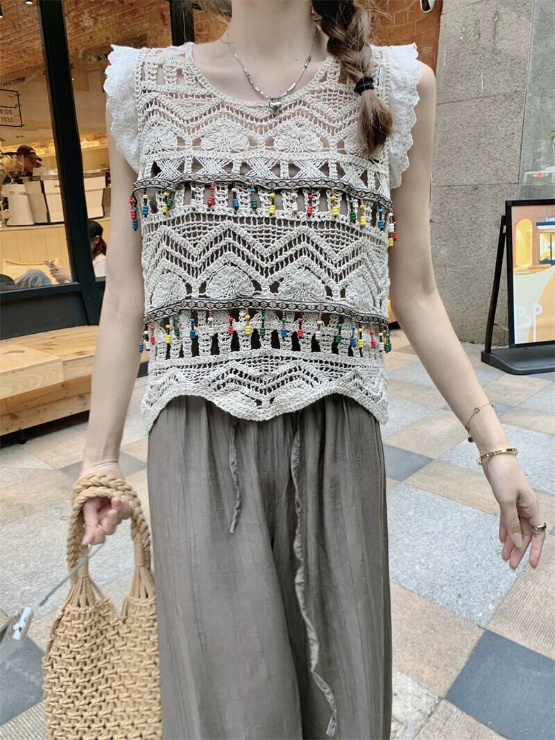 レトロかぎ針編み中空ニットセーター女性の夏バージョンオールマッチセンス不規則なベストトップ サマー 夏物 missk28308503958