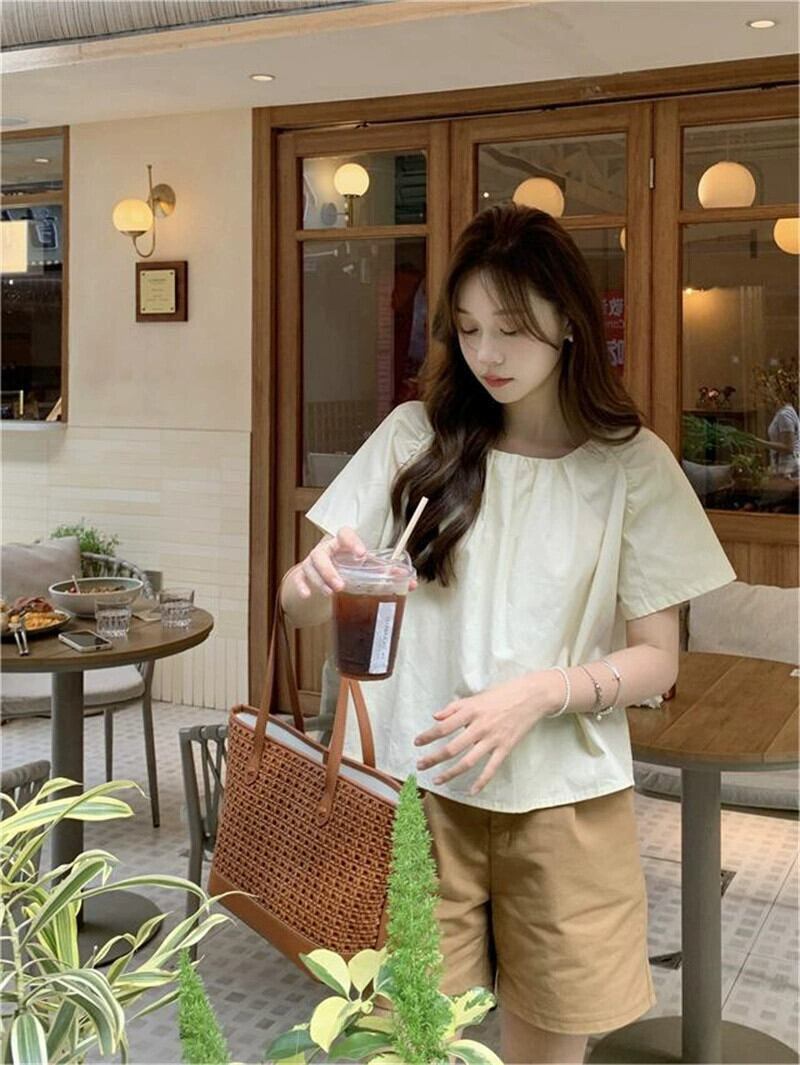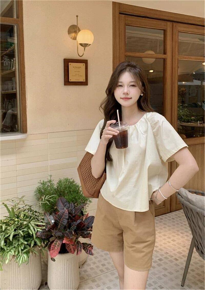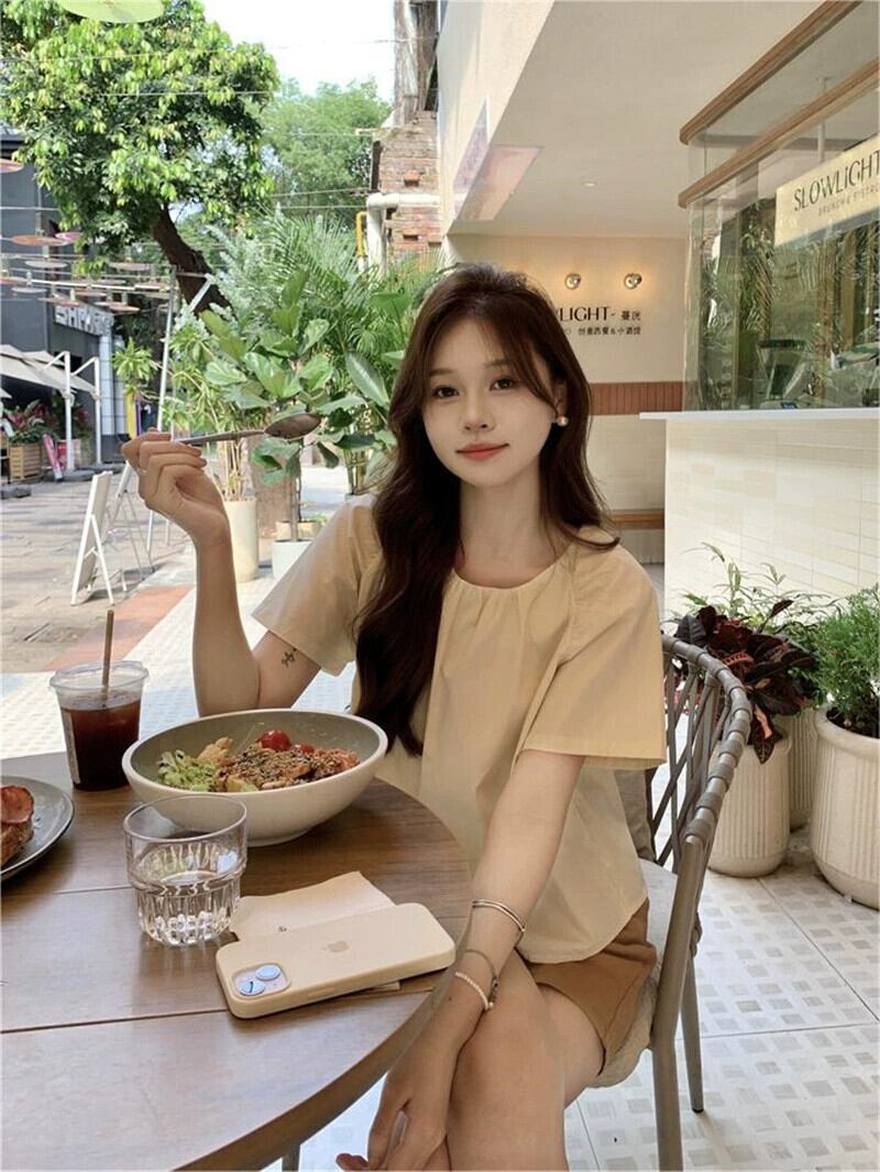 夏バージョン 2023 新しいシンプルなファッションオールマッチラウンドネックプルオーバールーズ無地半袖シャツトップ婦人服 サマー 夏物 Oネック ソリッドカラー missk38139891324