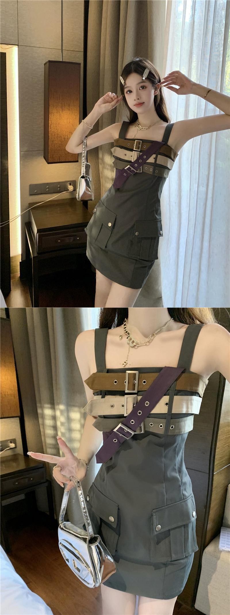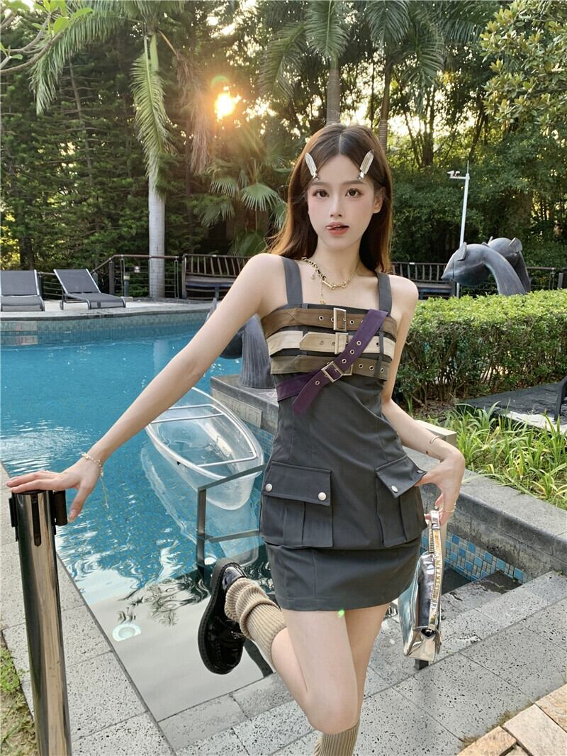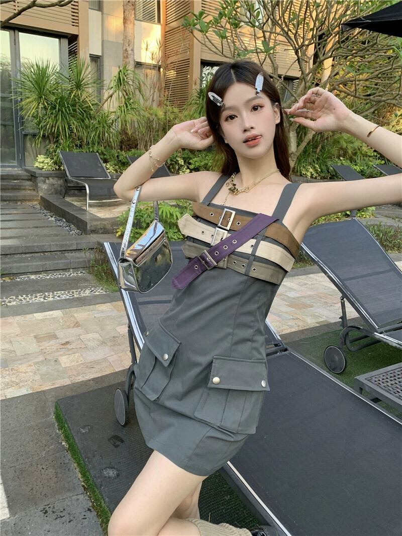 甘いクールツーリングサスペンダードレス女性の夏のレトロな新しいウエスト重工業ファッションデザインセンス A ラインスカート 大人ガーリー スウィート キュート カジュアル サマー 夏物 Aライン missk11711504680