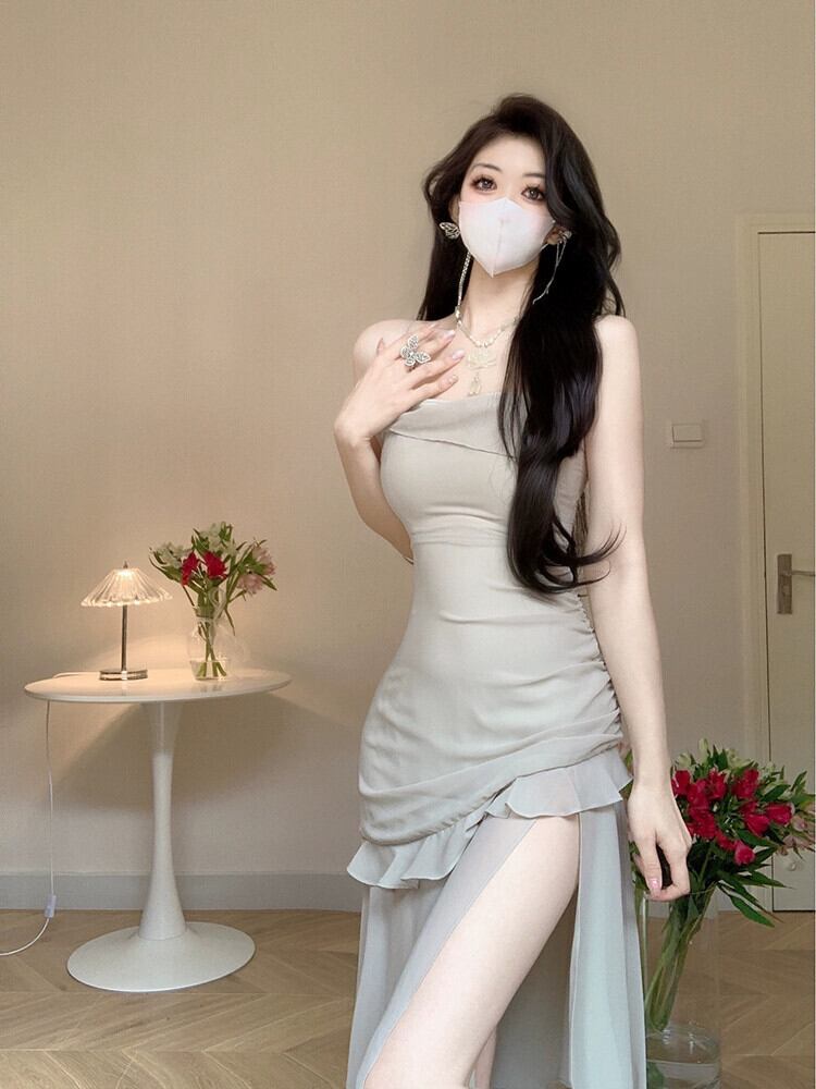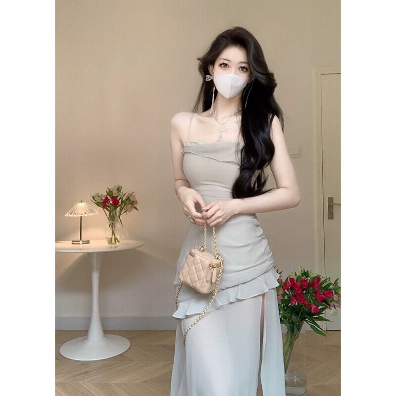 夏バージョン 2023 新しいウエスト痩身ファッション非対称ベベルエッジセクシーな気質シフォンドレス女性の潮 サマー 夏物 missk14162838285