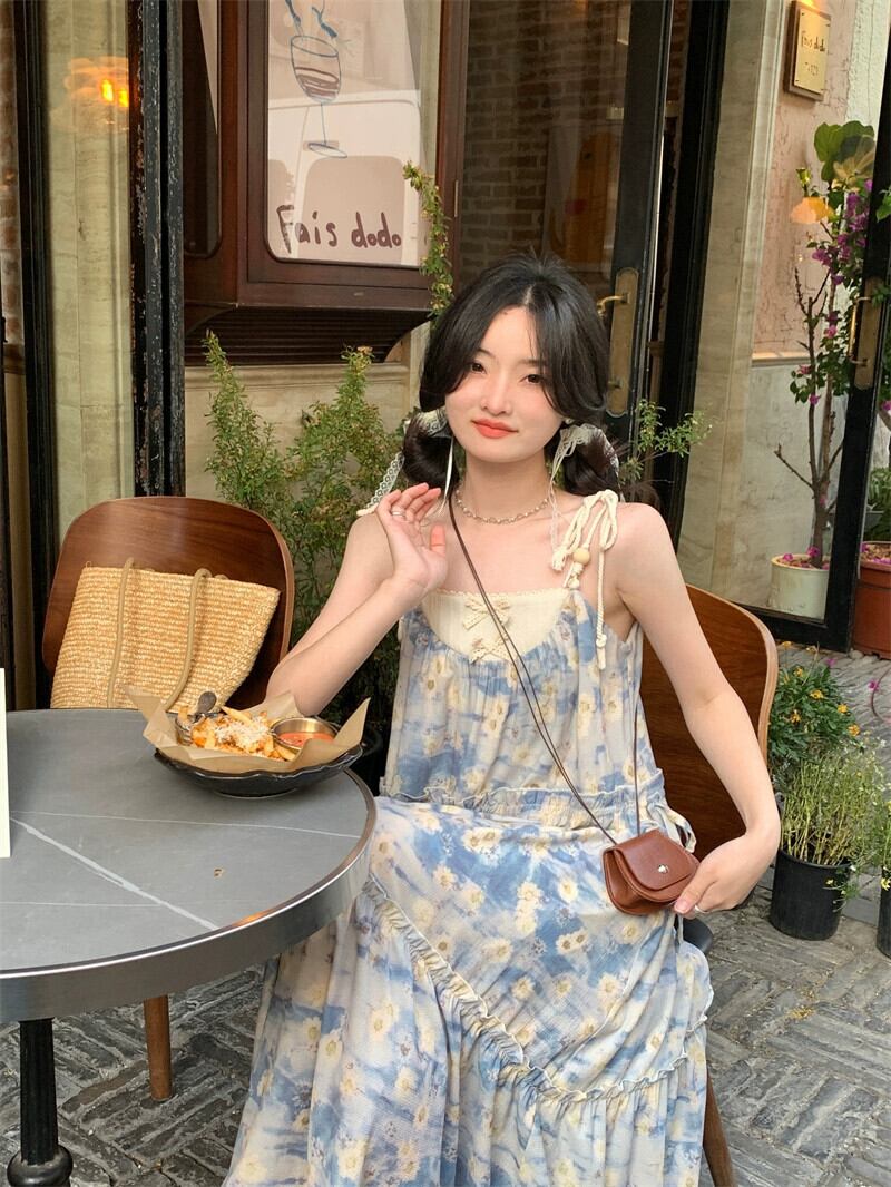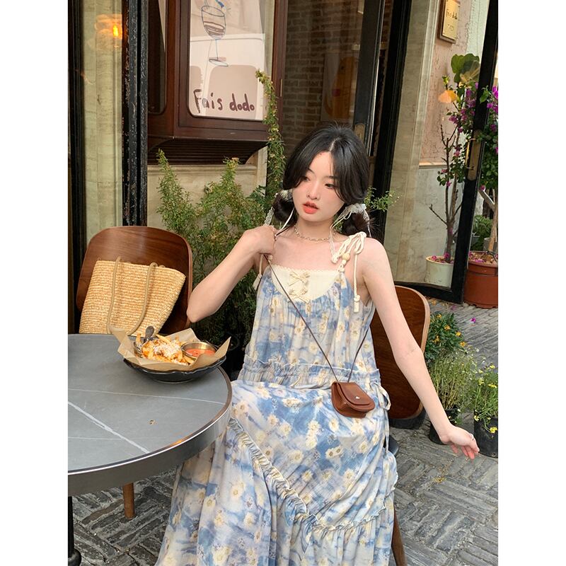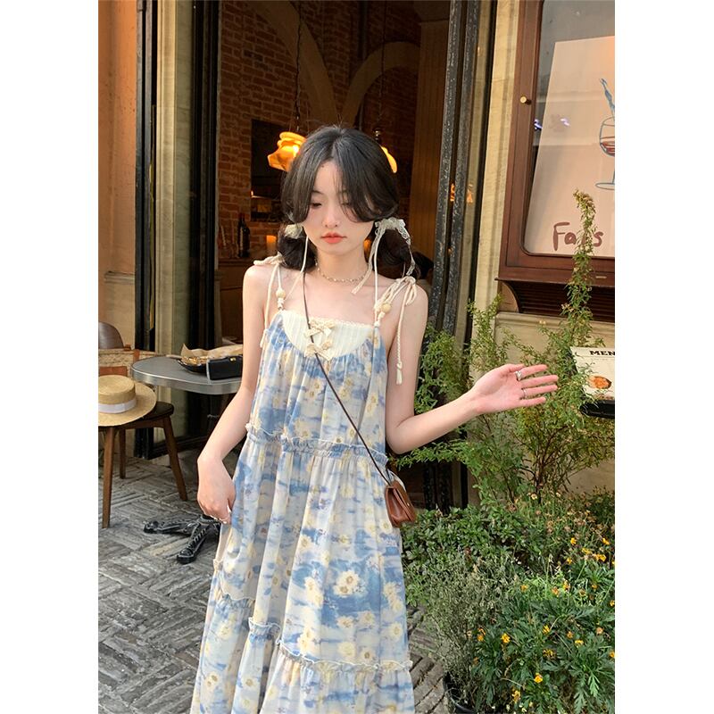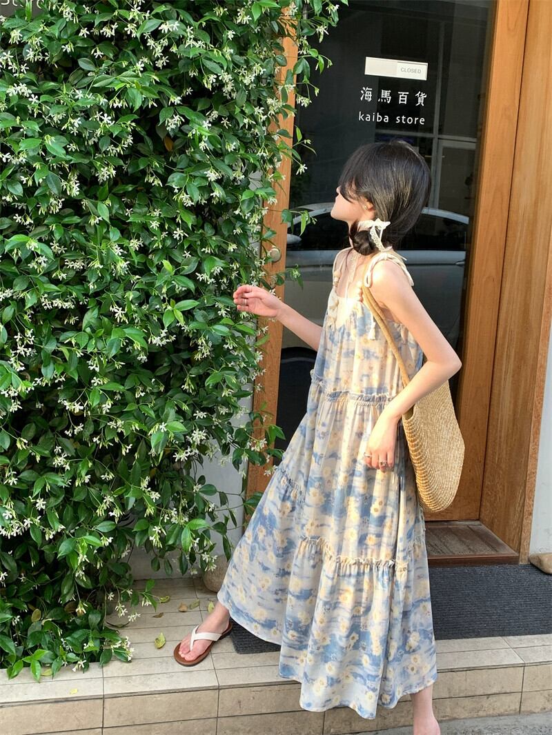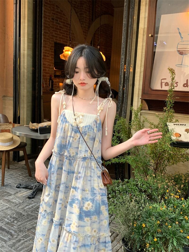 小さな新鮮な花柄のサスペンダードレスの女性の夏の 2023 新しいスタイルの A ラインスカートウエストとウエスト真菌 サマー 夏物 Aライン missk43368915932