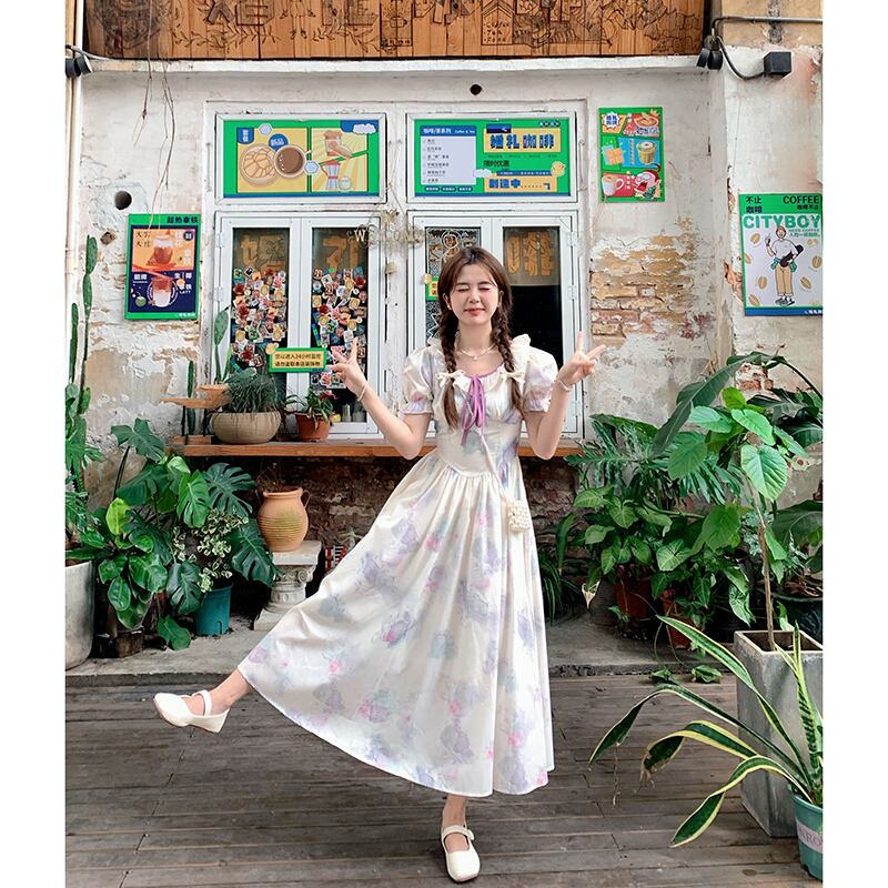 フレンチレトロプリントドレスの女性の夏の 2023 新しいウエスト痩身シックな妖精のスカートイン サマー 夏物 missk82239347281