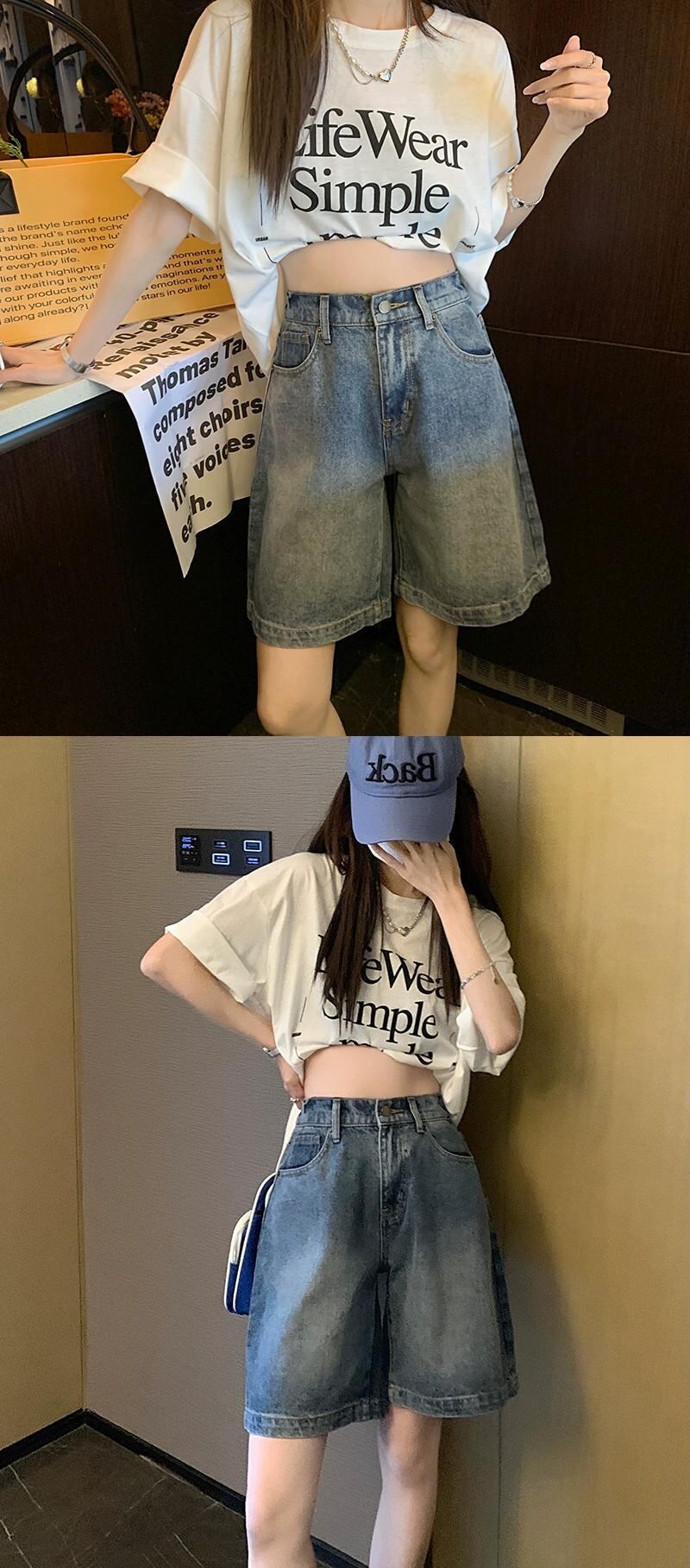 レトロウォッシュデニム5点パンツ夏の新バージョンのBFスタイルハイウエスト痩身オールマッチワイドレッグミッドパンツレディースパンツ ハイウェスト サマー 夏物 missk82431240093