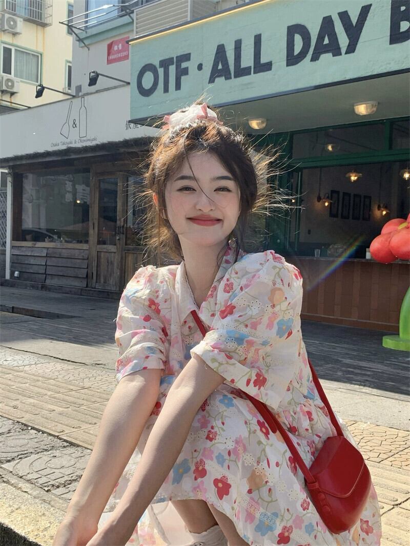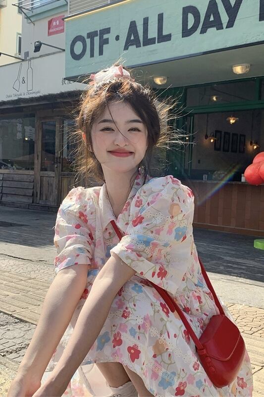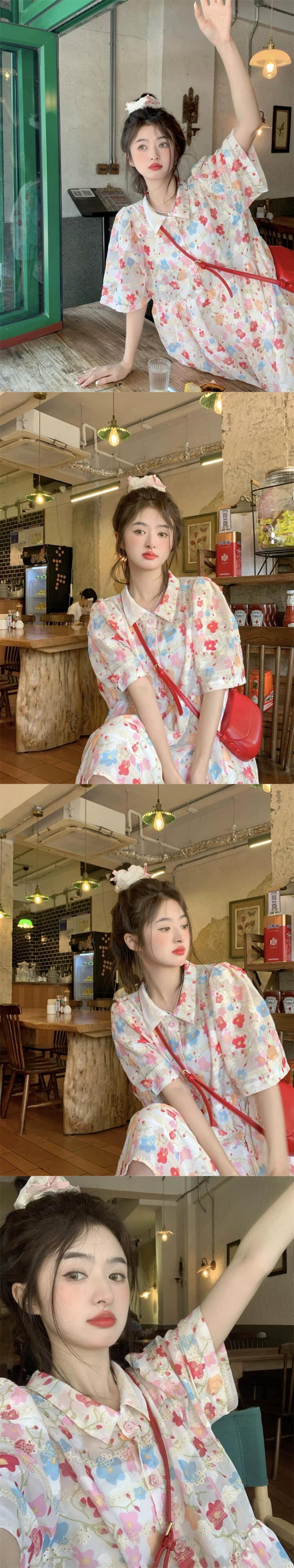 ドーパミンポロカラー半袖ドレス女性の夏の 2023 新しい甘い花柄ルーズハイウエストスカート ハイウェスト 大人ガーリー スウィート キュート カジュアル サマー 夏物 missk5168503922