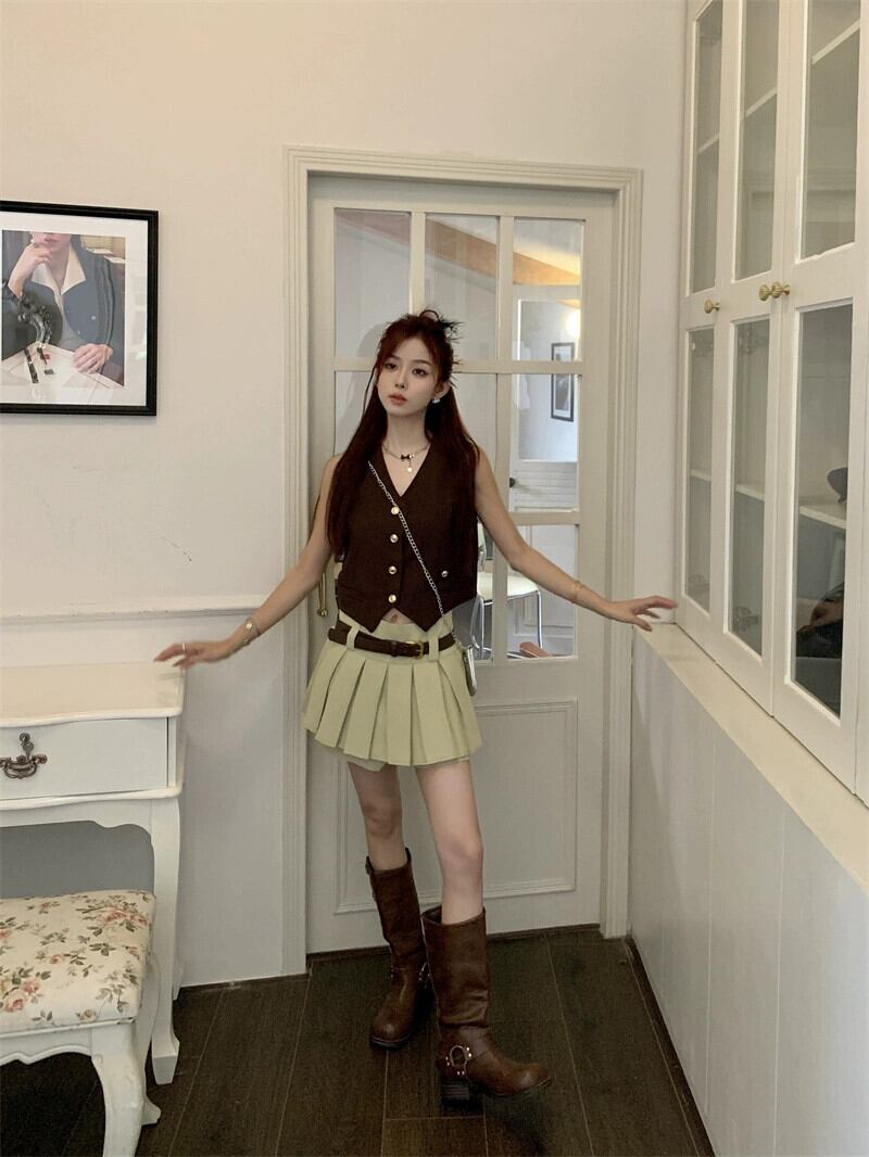 不規則なレトロショートスーツベストプリーツ A ラインスカート女性の夏の 2023 新しいファッションスーツ サマー 夏物 Aライン missk29234886523