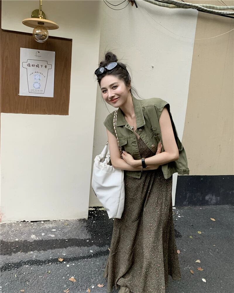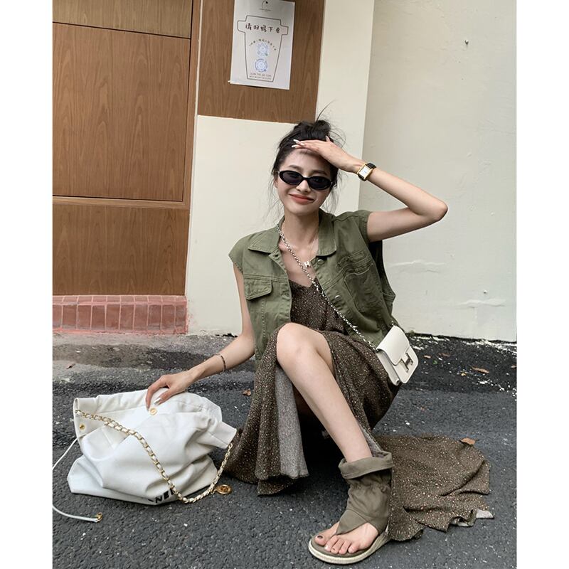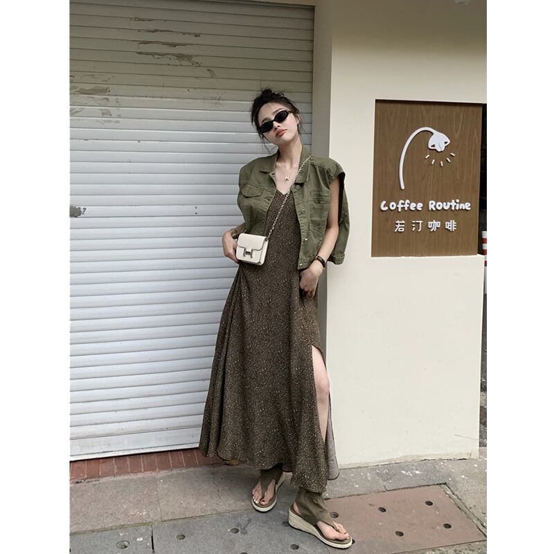 甘いクールデニムベストベスト V ネックスリットサスペンダードレス女性の夏の 2023 新しいファッションスーツ 大人ガーリー スウィート キュート カジュアル サマー 夏物 Vネック missk56196722797