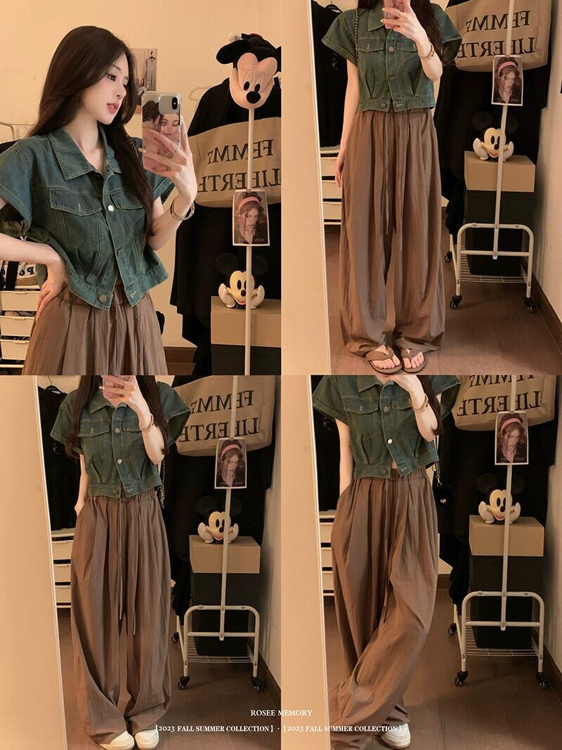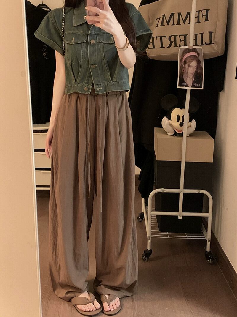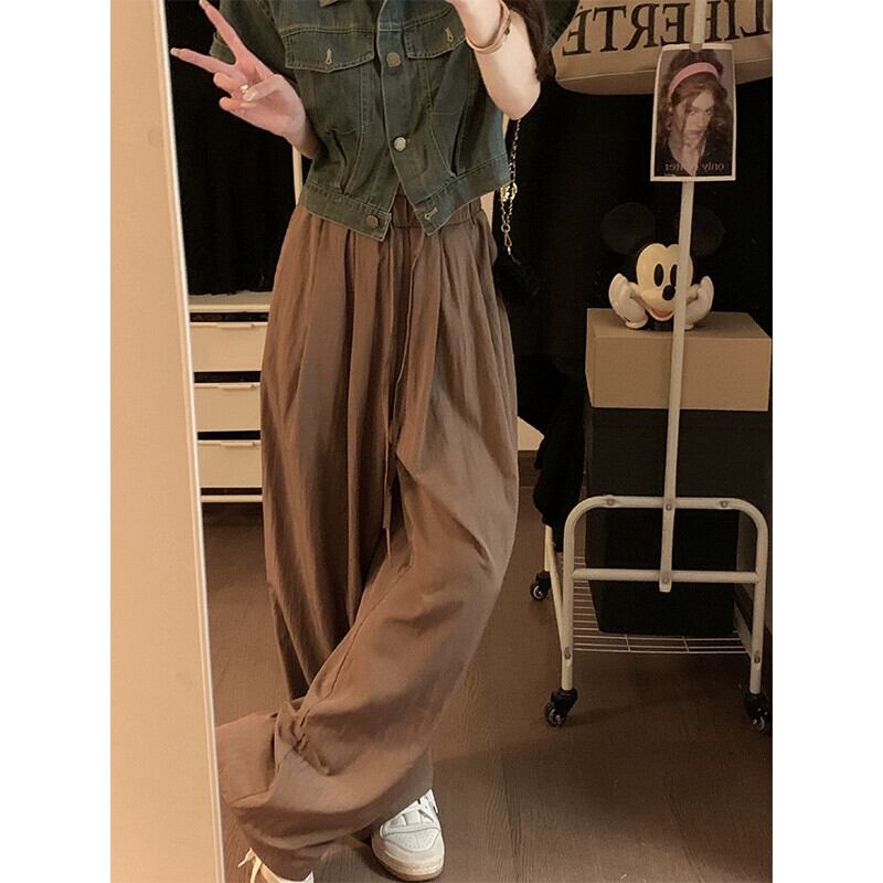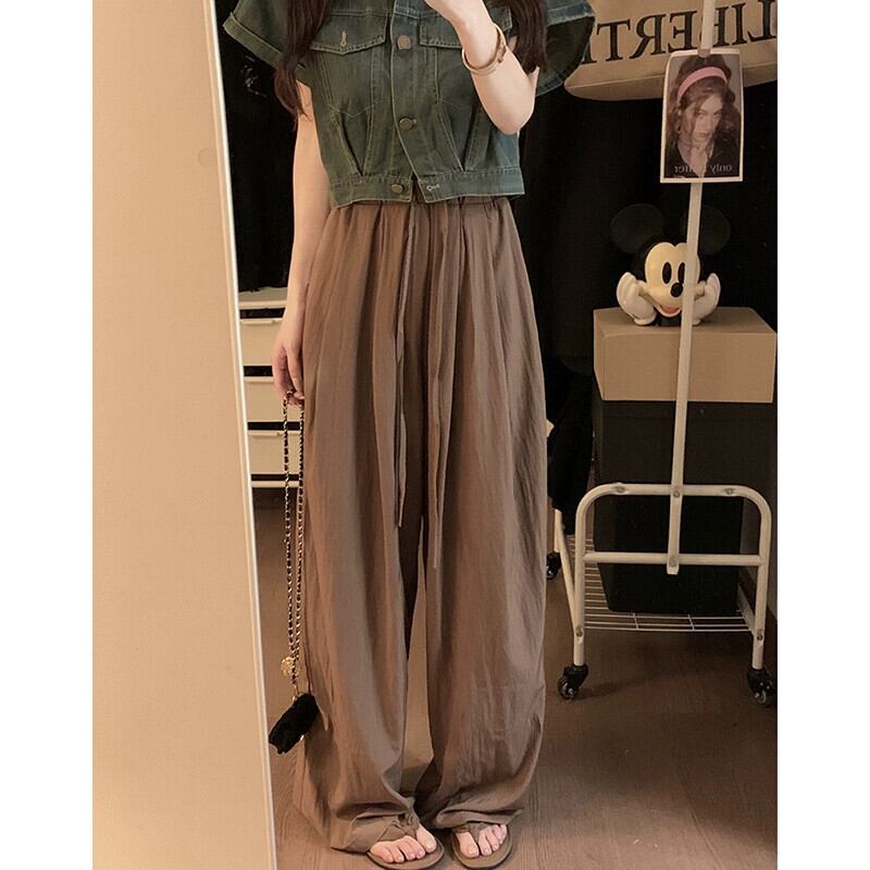 レトロワイドレッグカジュアルパンツレディース2023夏新作ハイウエスト痩身ファッションデザインドレープ感ネクタイロングパンツ ハイウェスト サマー 夏物 missk21493775122