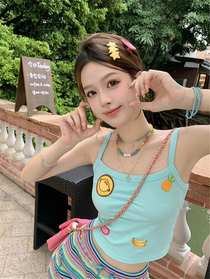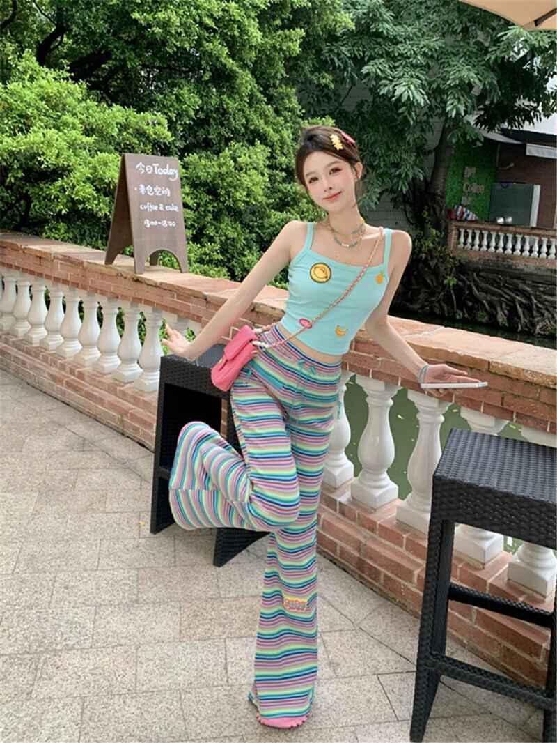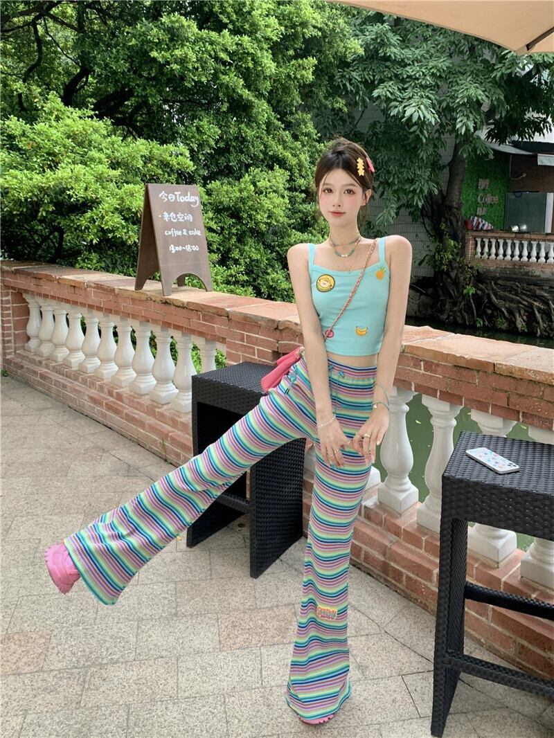 ドーパミン着用ショート甘くてスパイシーなキャミソールレインボーフレアパンツ女性の夏の 2023 新しいファッションスーツ レッド 大人ガーリー スウィート キュート カジュアル サマー 夏物 missk16092319882