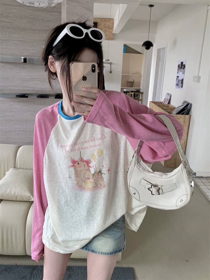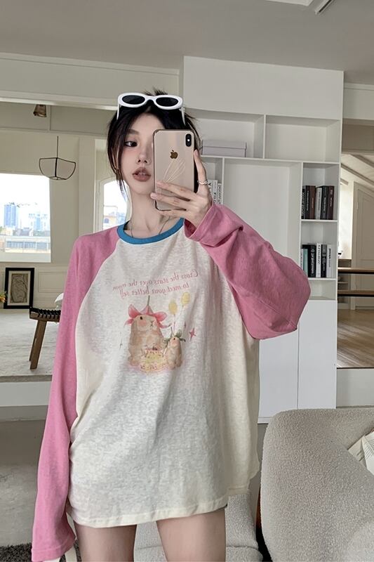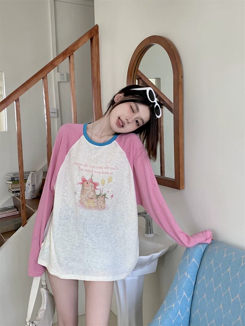 ラグランスリーブ日焼け止め Tシャツ女性の夏バージョン 2023 新しい薄いセクション漫画プリントコントラストカラールーズ長袖トップ ロング サマー 夏物 missk41940532953