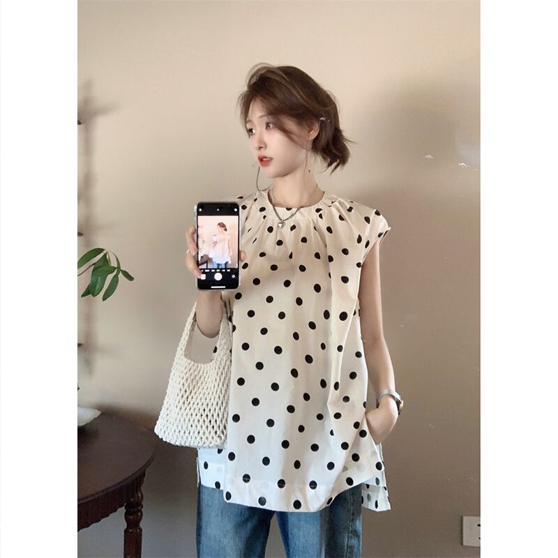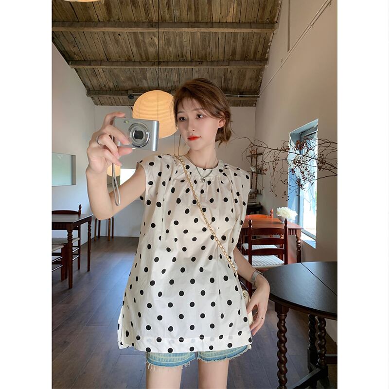 水玉シャツレディース2023夏新作甘いデザインセンスニッチスリットゆったりミドル丈ハイエンドトップス 大人ガーリー スウィート キュート カジュアル サマー 夏物 missk61821769083
