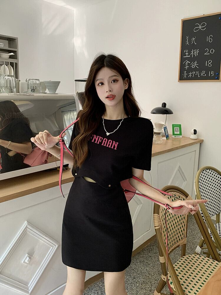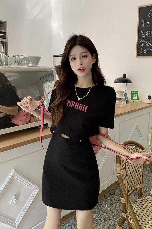 取り外し可能な文字刺繍ドレス夏の新しいデザインセンスニッチブラックバッグヒップスカート女性イン サマー 夏物 missk14860847491