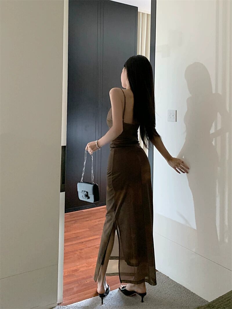 Pure Desire スパイスガールスタイルバタフライプリントドレス夏スリムサイドスリットバッグヒップサスペンダーロングドレスレディースドレス サマー 夏物 missk83041217171