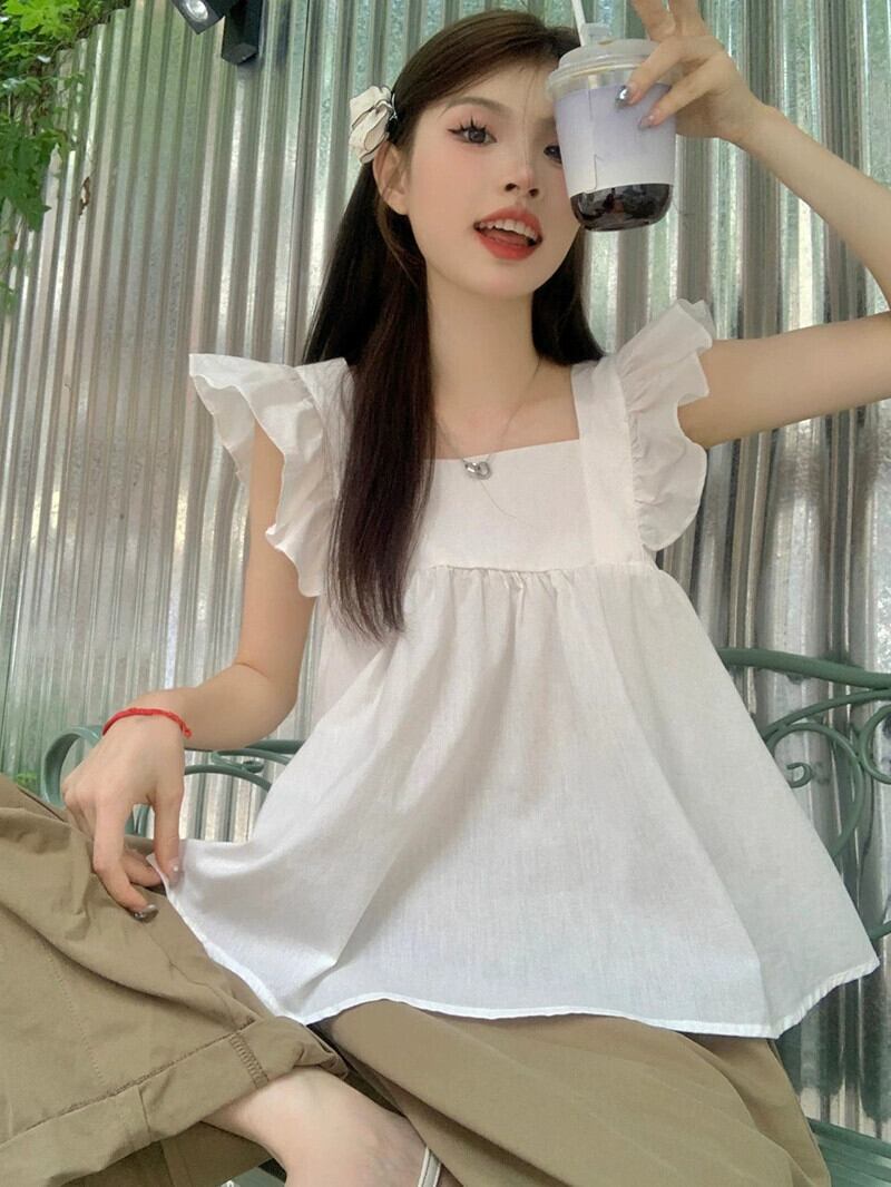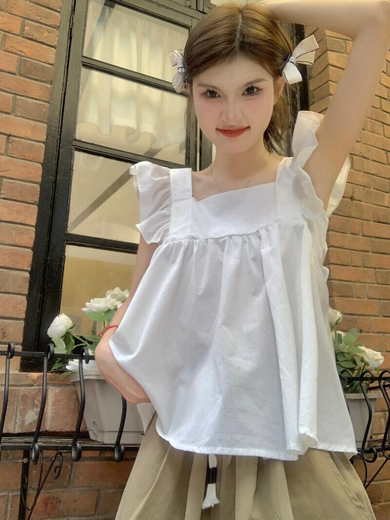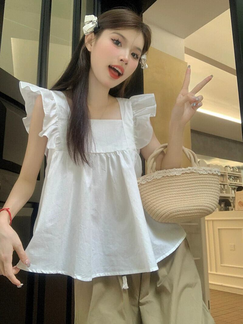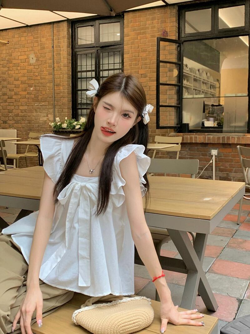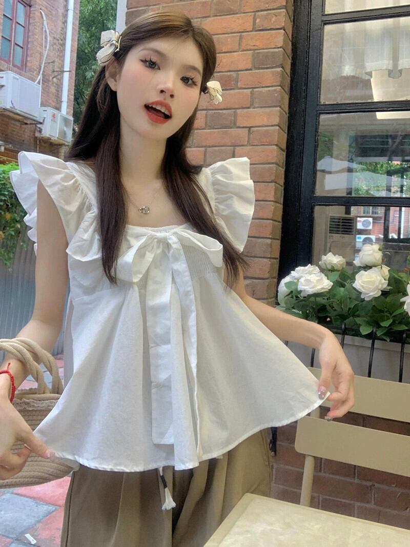フレンチスタイルの優しいフライングスリーブシャツレディース2023年夏新デザイン蝶ネクタイシックなニッチトップ リボン サマー 夏物 missk88847710604