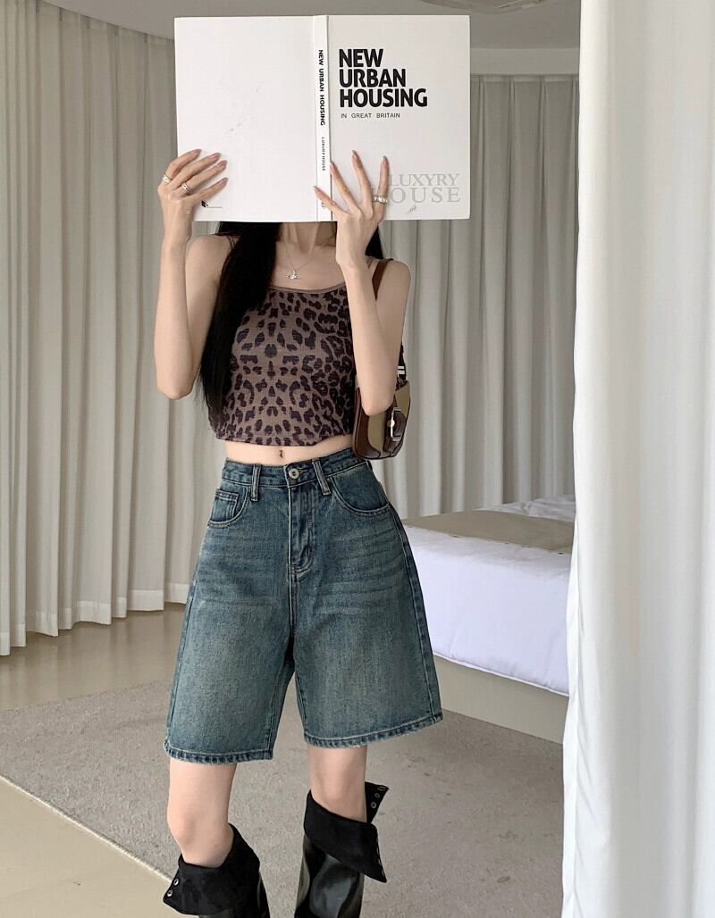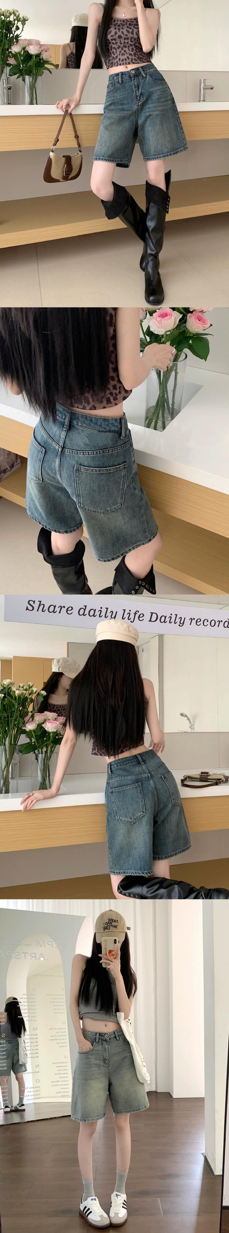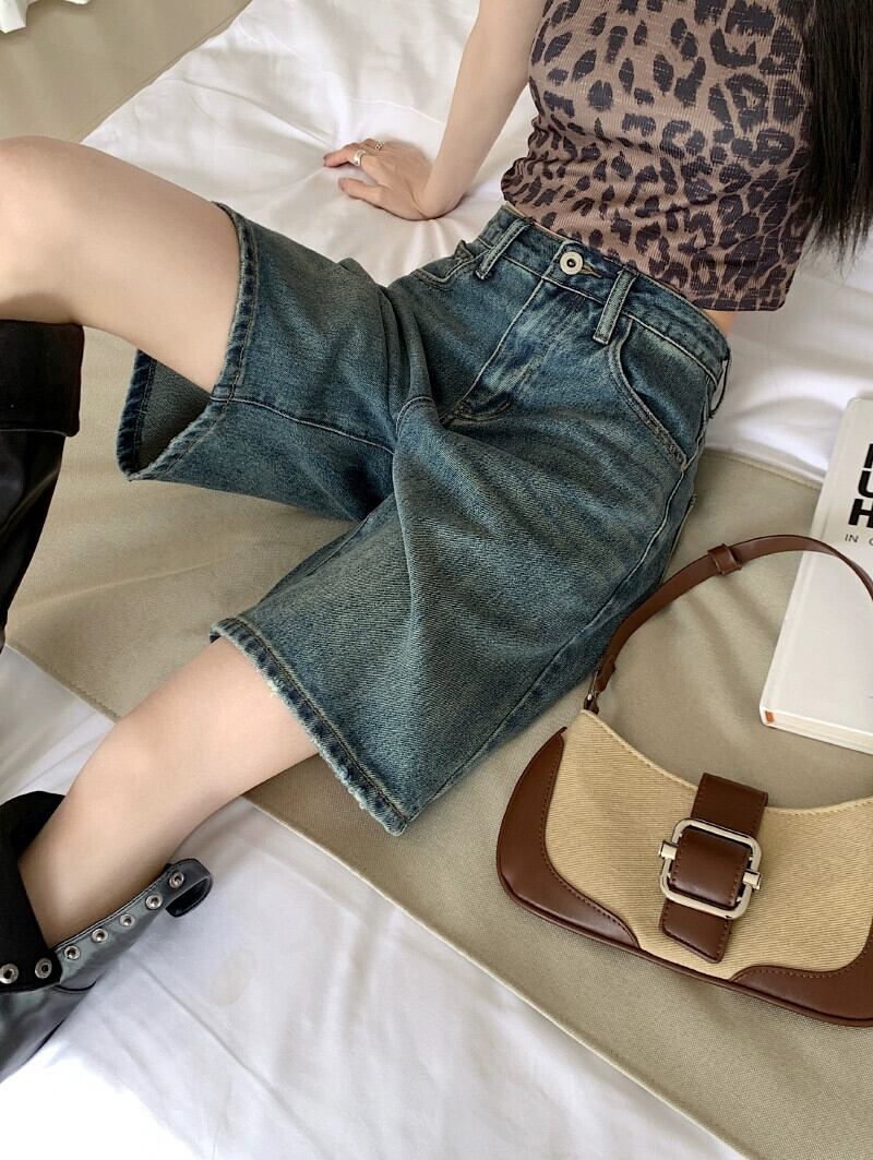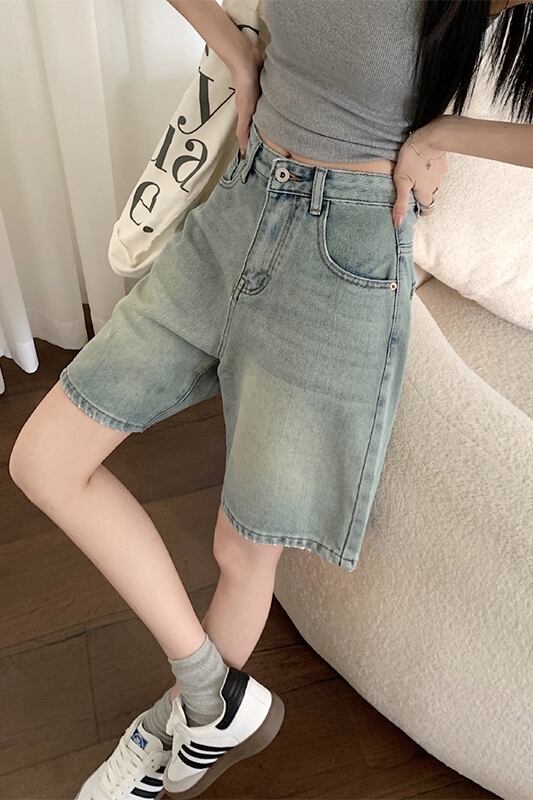 レトロウォッシュ 5 ポイント ジーンズ レディース 2023 夏の新しいハイウエスト痩身 BF スタイルオールマッチワイドレッグルーズパンツ ハイウェスト サマー 夏物 missk28600959916