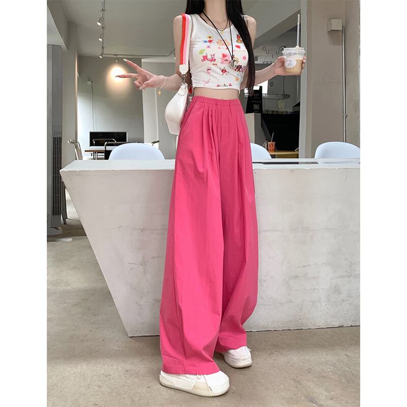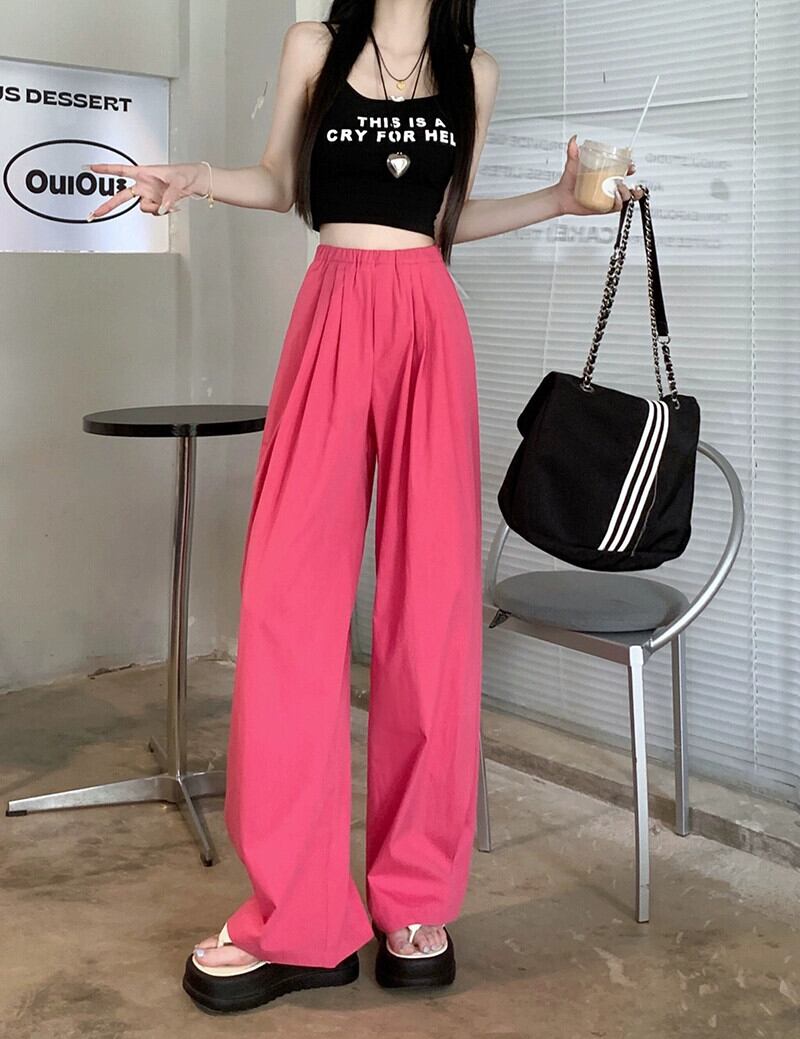 ローズレッドカジュアルパンツ女性の夏バージョン2023新しい甘いハイウエストスリミングオールマッチワイドレッグモップパンツ ハイウェスト 大人ガーリー スウィート キュート サマー 夏物 missk80781015611
