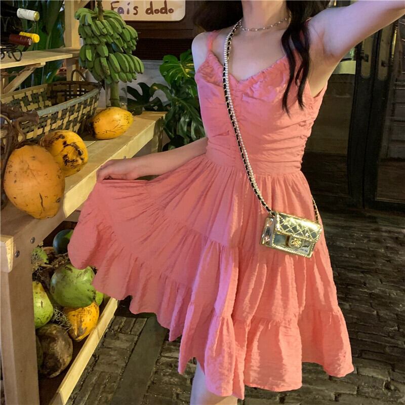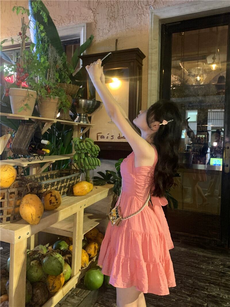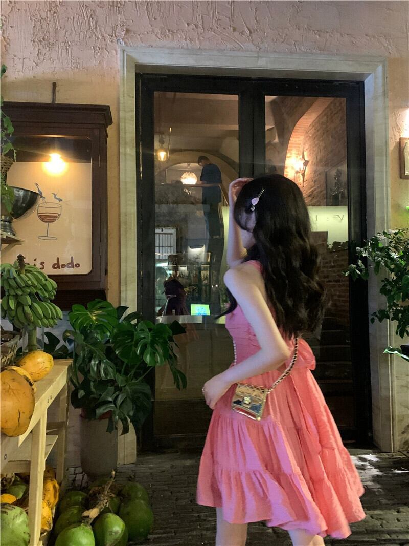 Sweet Spice Girls ボウノットバックレスサスペンダードレス レディース 夏感 ニッチウエスト Aライン ショートスカート リボン 大人ガーリー スウィート キュート カジュアル サマー 夏物 missk585172390