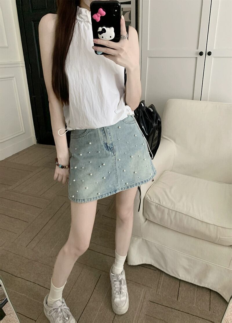 デニムスカートレディース2023夏新作フレンチスタイルニッチハイエンド耐光デザインセンスAラインスカート サマー 夏物 missk2113338370
