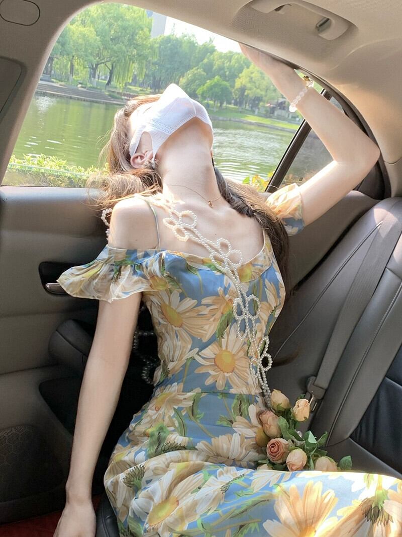 フレンチロマンチックドレス女性の夏2023フライングスリーブフローラルウエストスリムミッドロングティーブレイクスカート サマー 夏物 花柄 missk29350017479