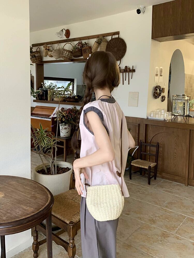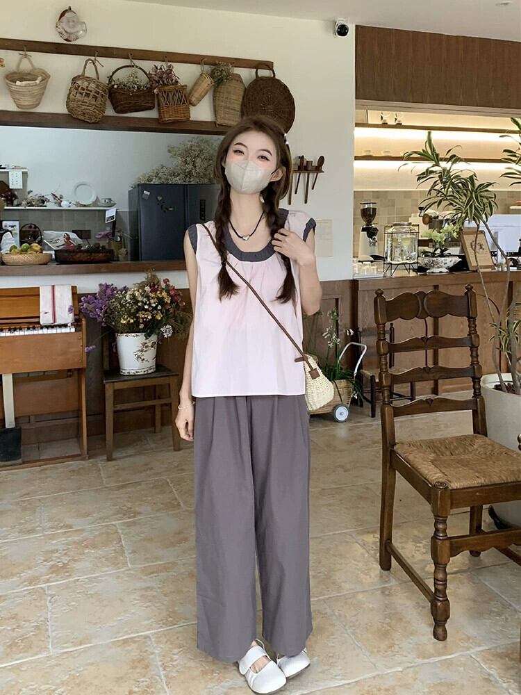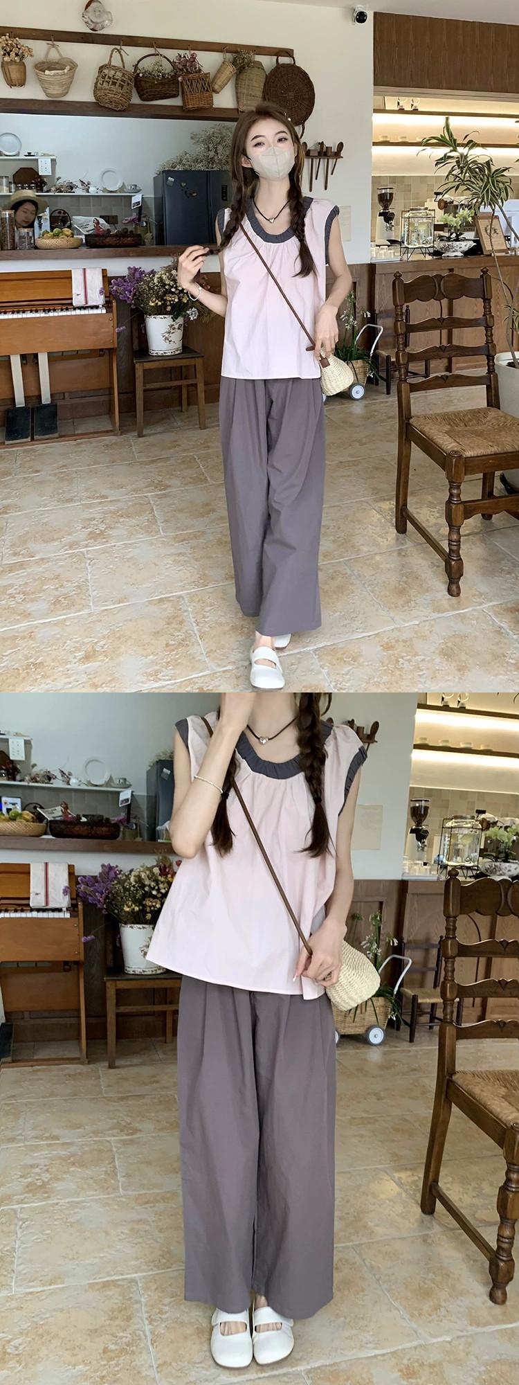 甘いカラーマッチングラウンドネックノースリーブシャツレディース2023年夏新作シンプルで多用途なルーズショートシックトップ 大人ガーリー スウィート キュート カジュアル サマー 夏物 Oネック missk40045712544