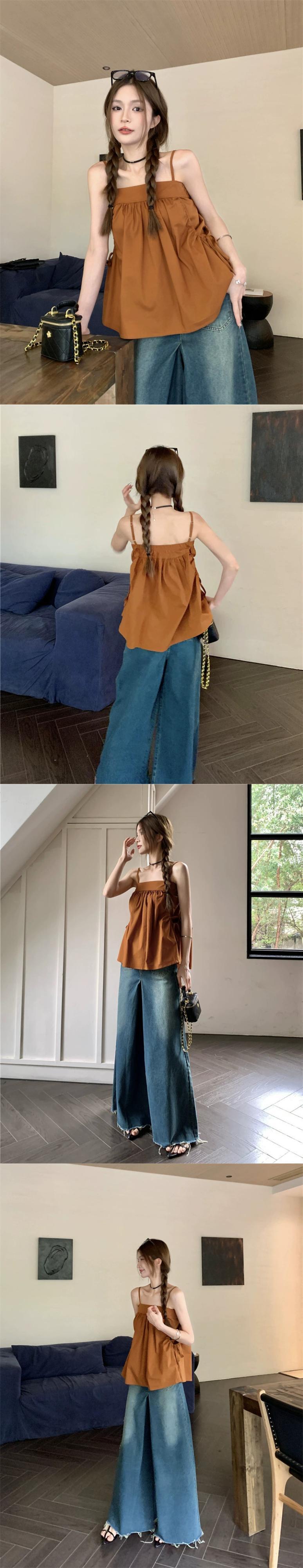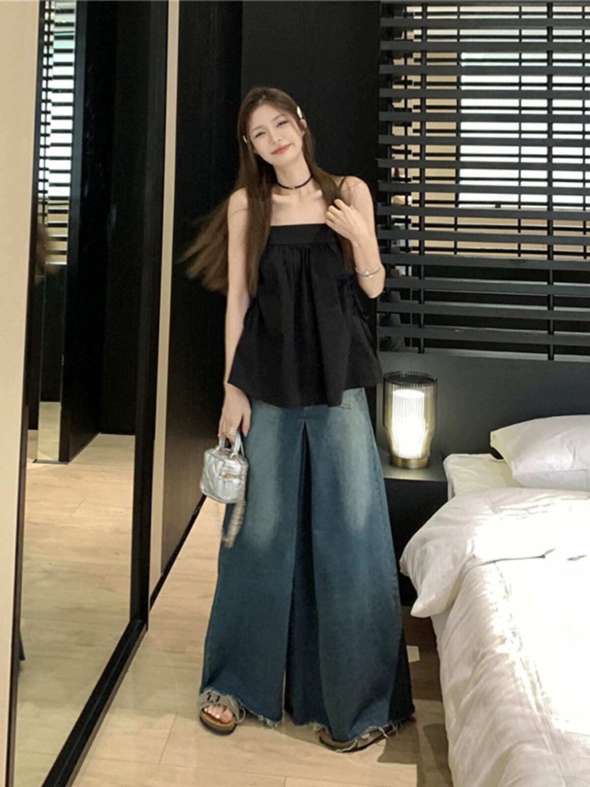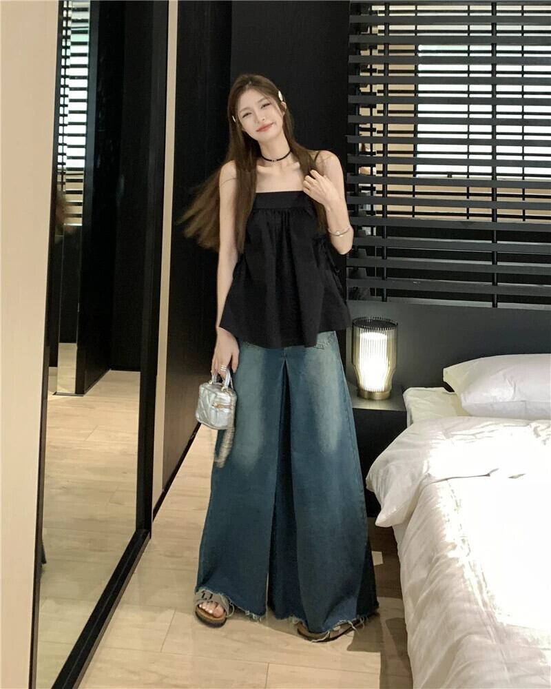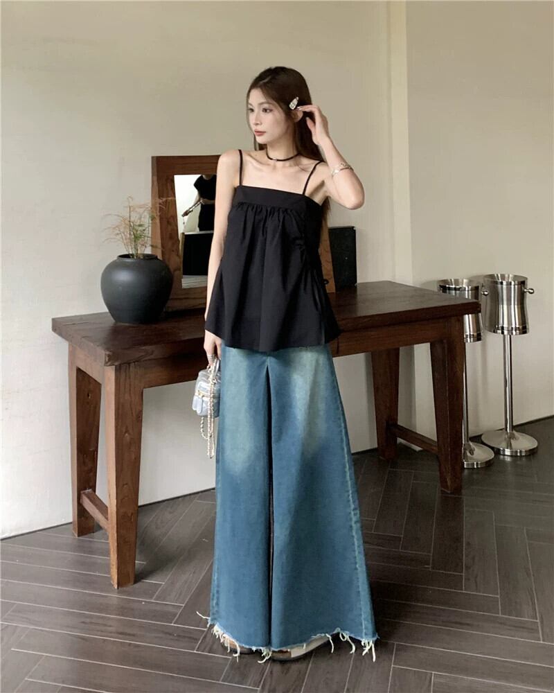 色:キャラメル色,黒,デニムワイドレッグパンツ