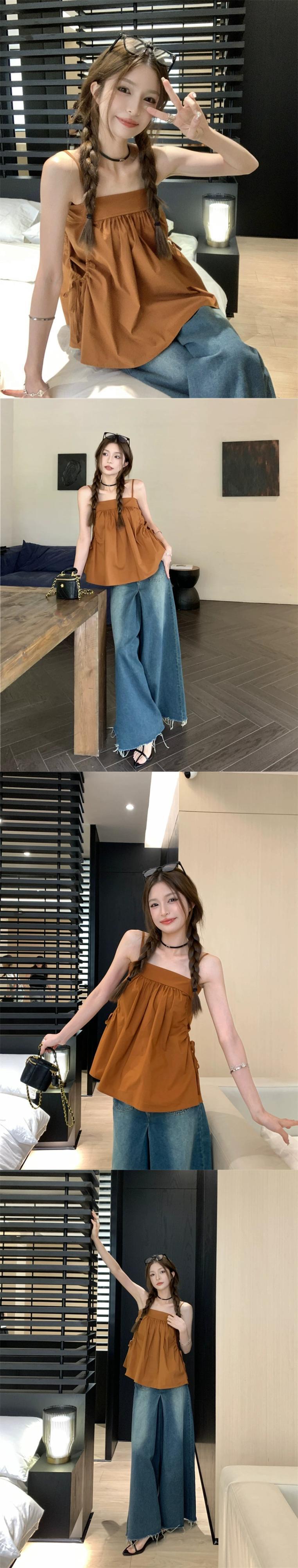 ワンショルダーサスペンダーシャツレディース夏バージョン2023新中空デザインセンスショートノースリーブウエスタンシャツ 半袖 ハーフスリーブ サマー 夏物 missk4239325324