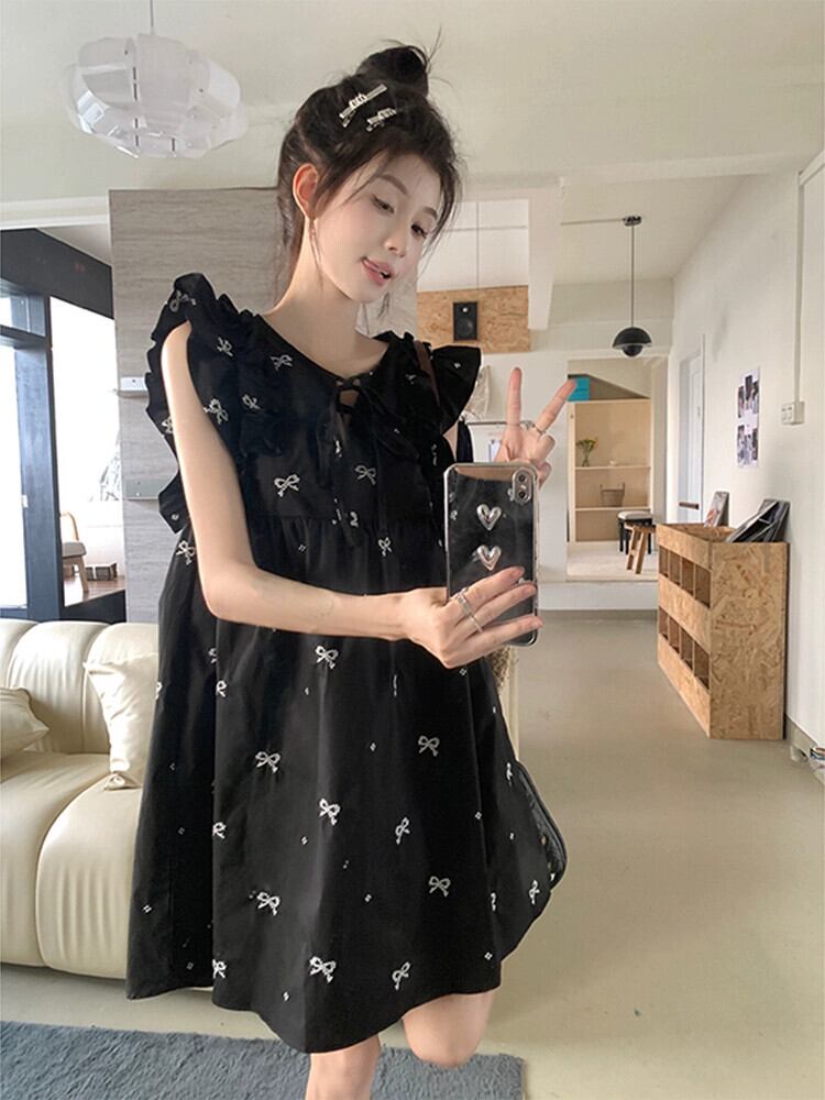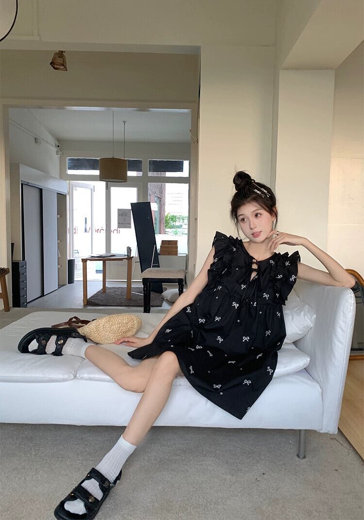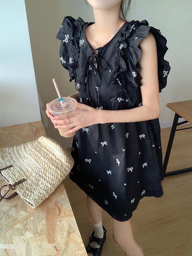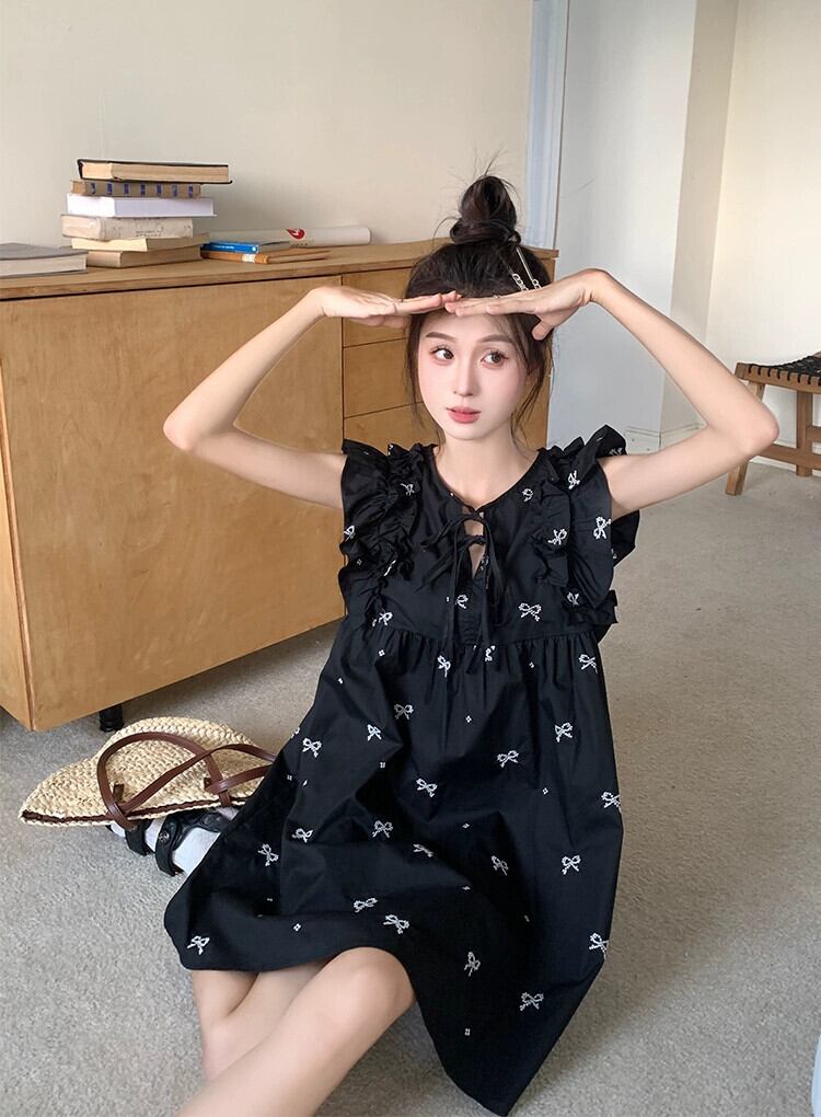 ヘップバーンスタイル人形スカート婦人服夏 2023 新スタイル Feifei 袖ネクタイ刺繍デザインルーズドレス サマー 夏物 missk10618634854