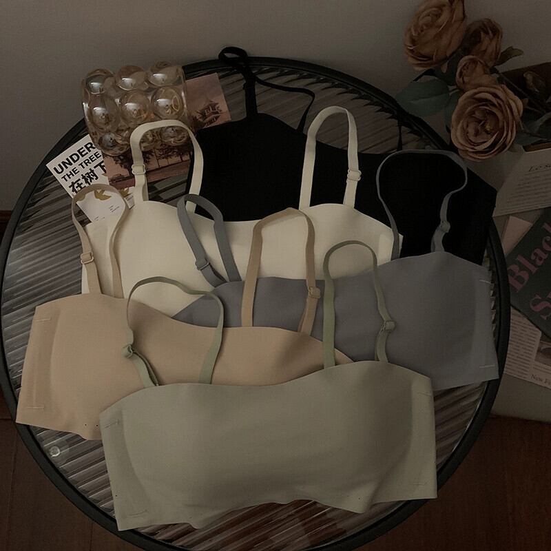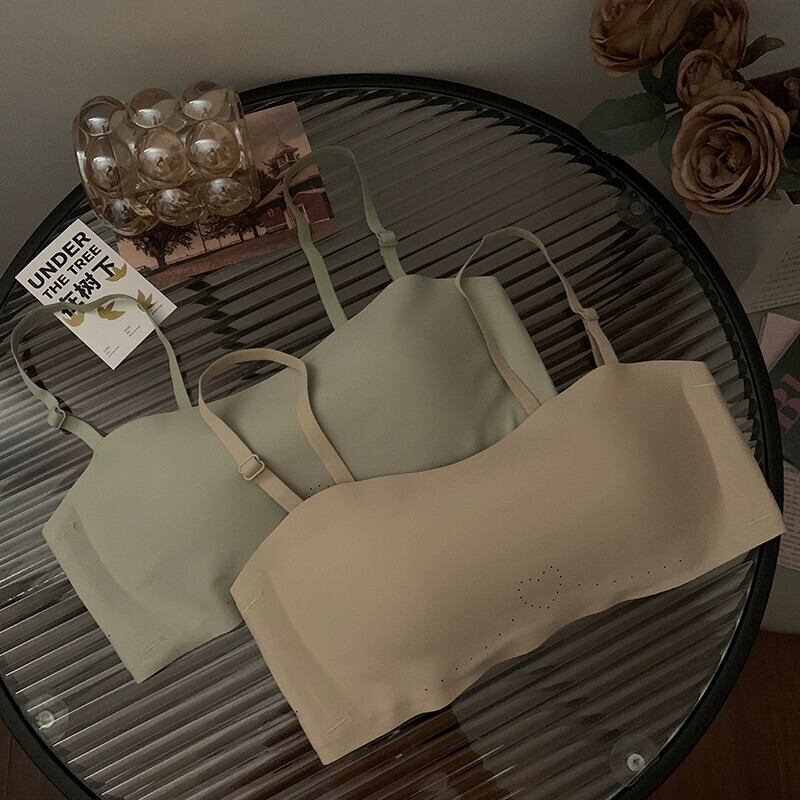 スチールリングなし小さな胸ギャザーブラジャー夏 2023 新しい滑り止めチューブトップ取り外し可能なストラップレス目に見えない下着女性 レッド サマー 夏物 指輪 missk36581794327