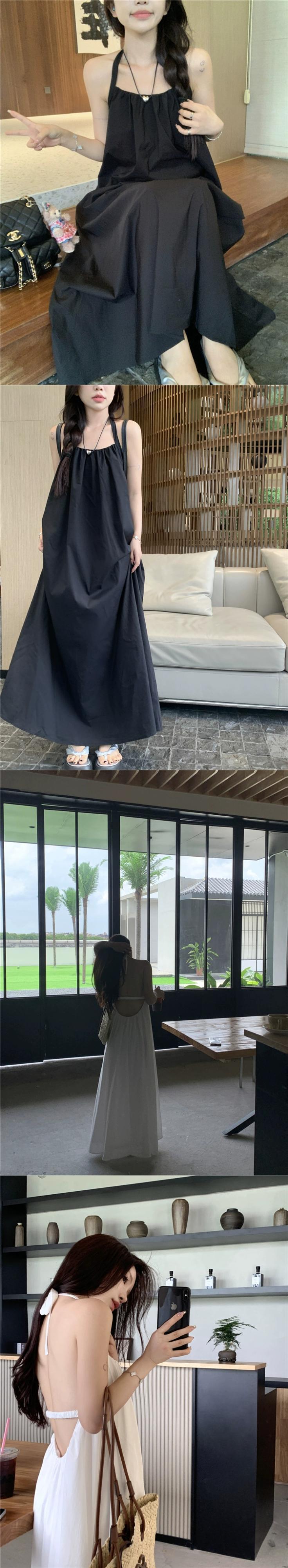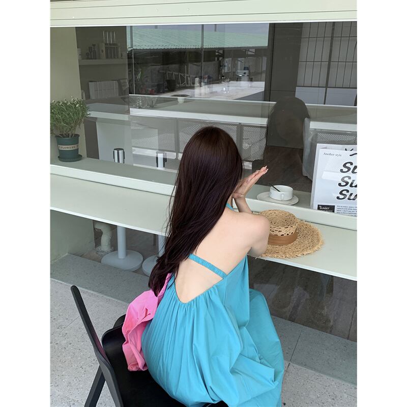 ホリデースタイルオープンバックホルターネックドレスレディース夏の新しいフレンチデザインセンスニッチカバー肉ファッション年齢を軽減するロングスカート サマー 夏物 missk12238164452